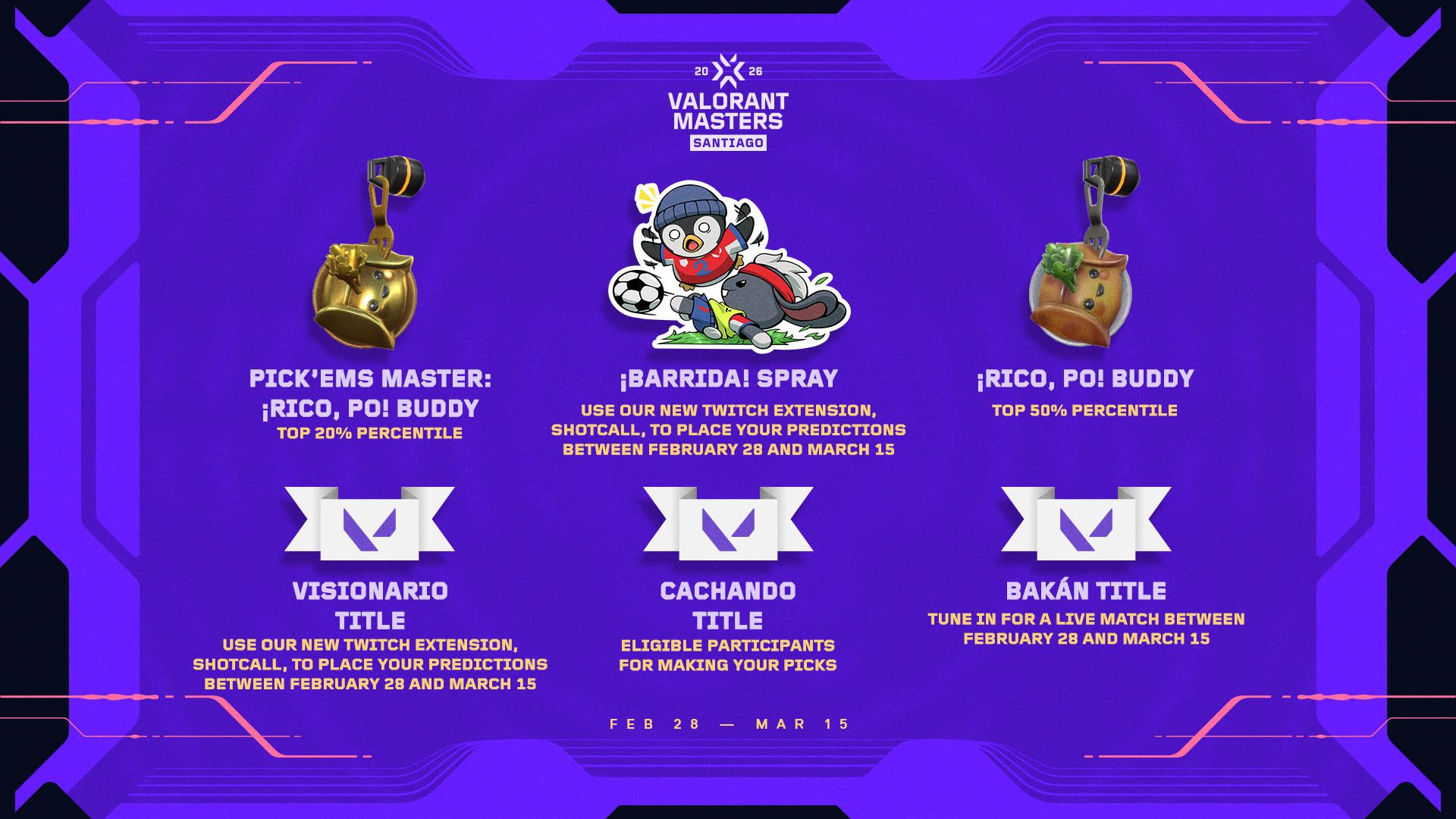 Masters Santiago will also feature Shotcall, a live Twitch extension that lets you predict what happens next during official VCT broadcasts. Call maps, rounds, and clutch moments in real time, earn points for correct reads, and climb the global leaderboard. Available on desktop via the Twitch extension.