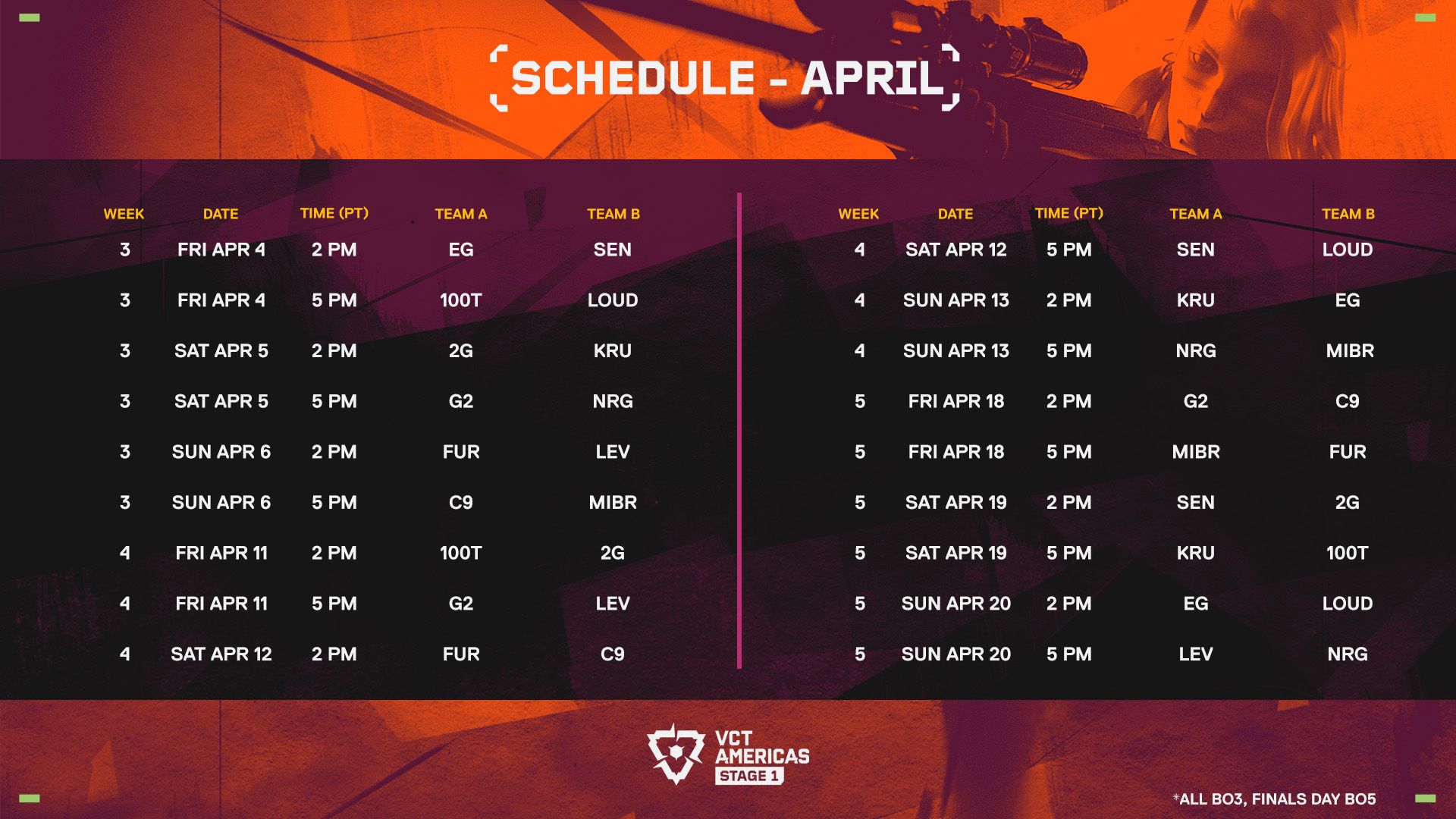 VCT Americas will have four days of matches in an alternate studio during both Stage 1 and Stage 2.