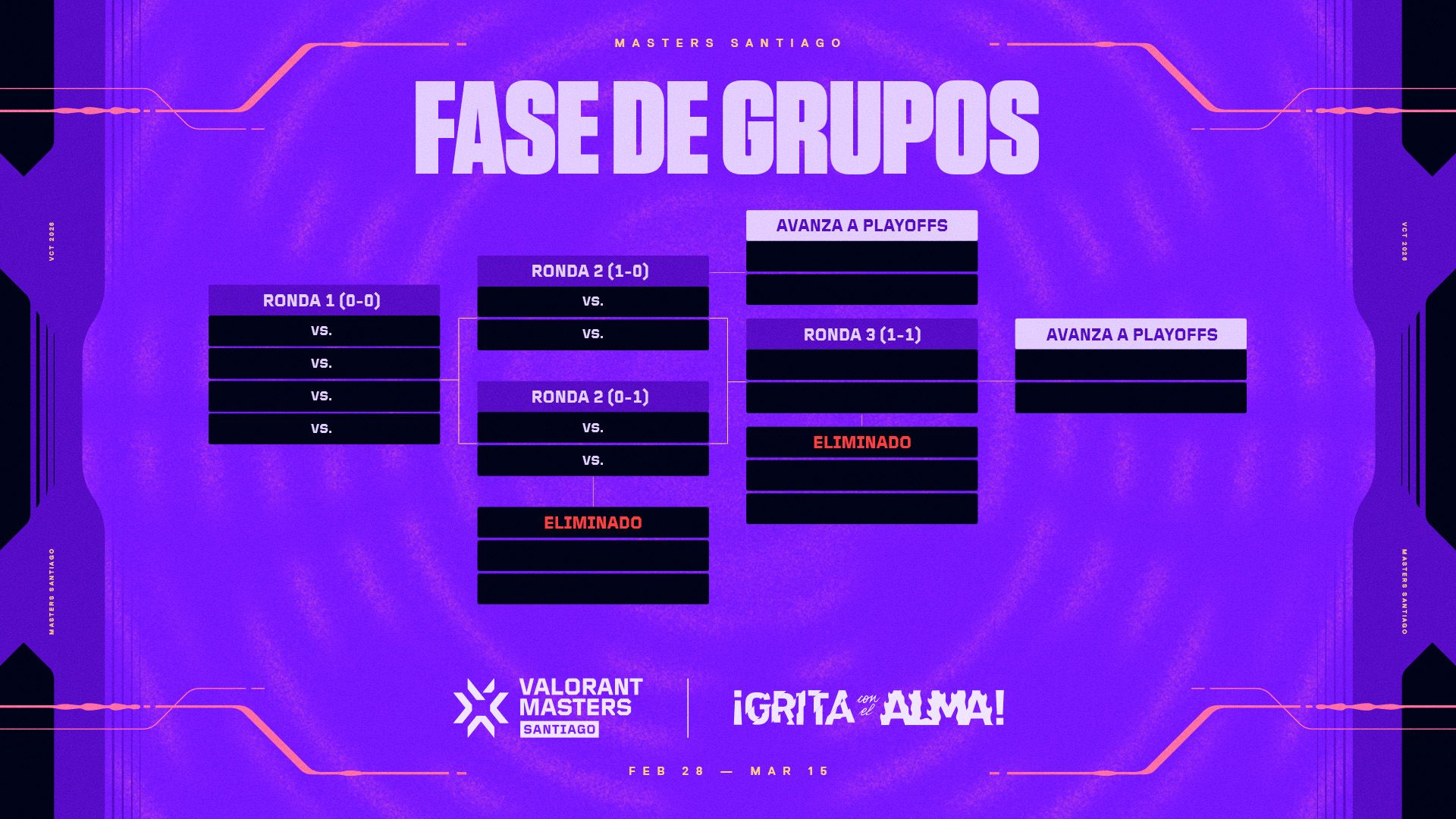 El Masters Santiago se divide en dos etapas: la Swiss Stage y los Playoffs.