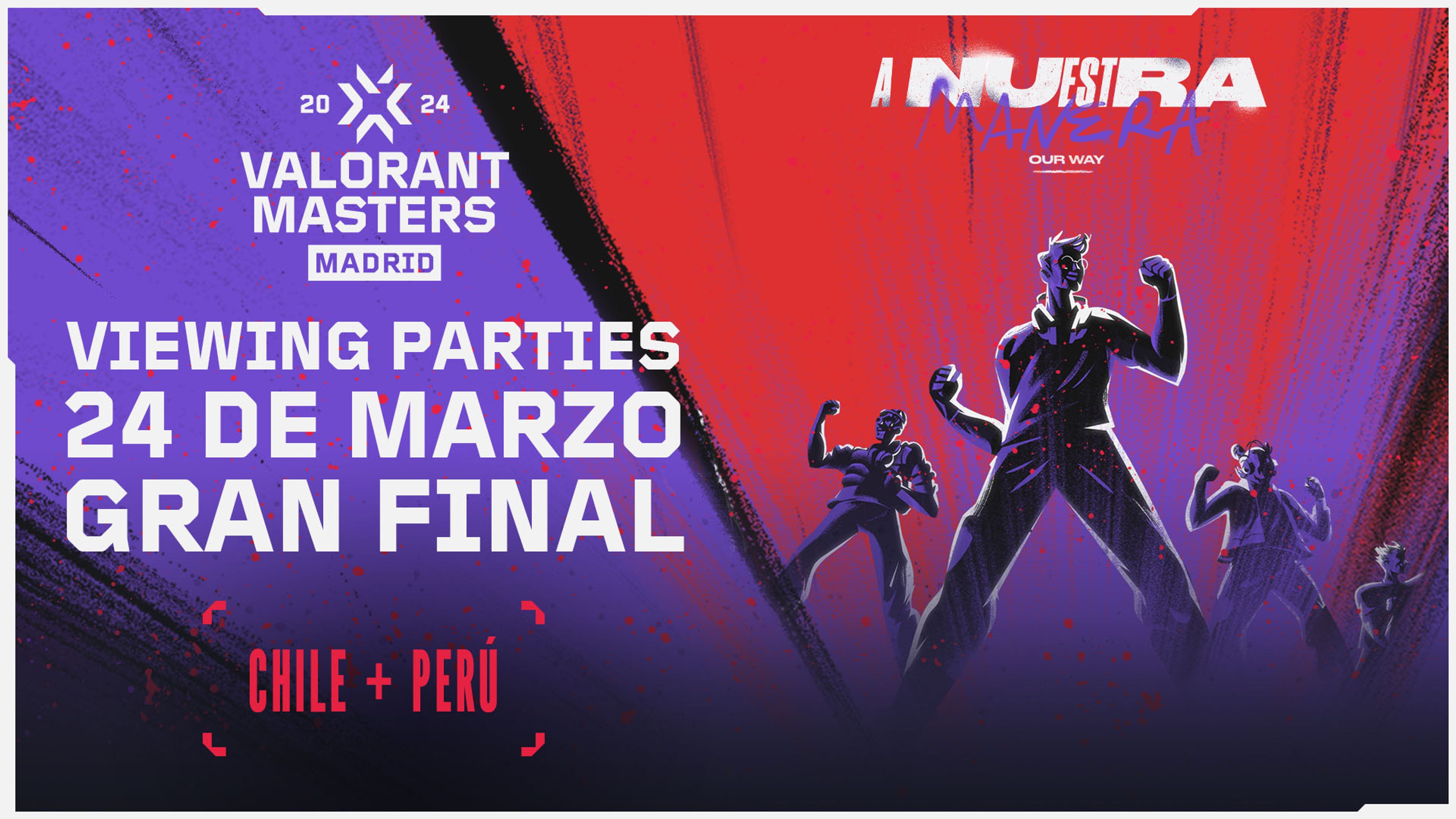 VALORANT Masters se vive a nuestra manera, y desde España hasta LATAM la acción de nuestro deporte se contagia. Tendremos muchas actividades para todos nuestros agentes de Chile y Perú. ¡La cita es el 24 de marzo con la final de VALORANT Masters Madrid! Sigue todas las transmisiones y consulta los horarios de tu país en https://valorantesports.com.