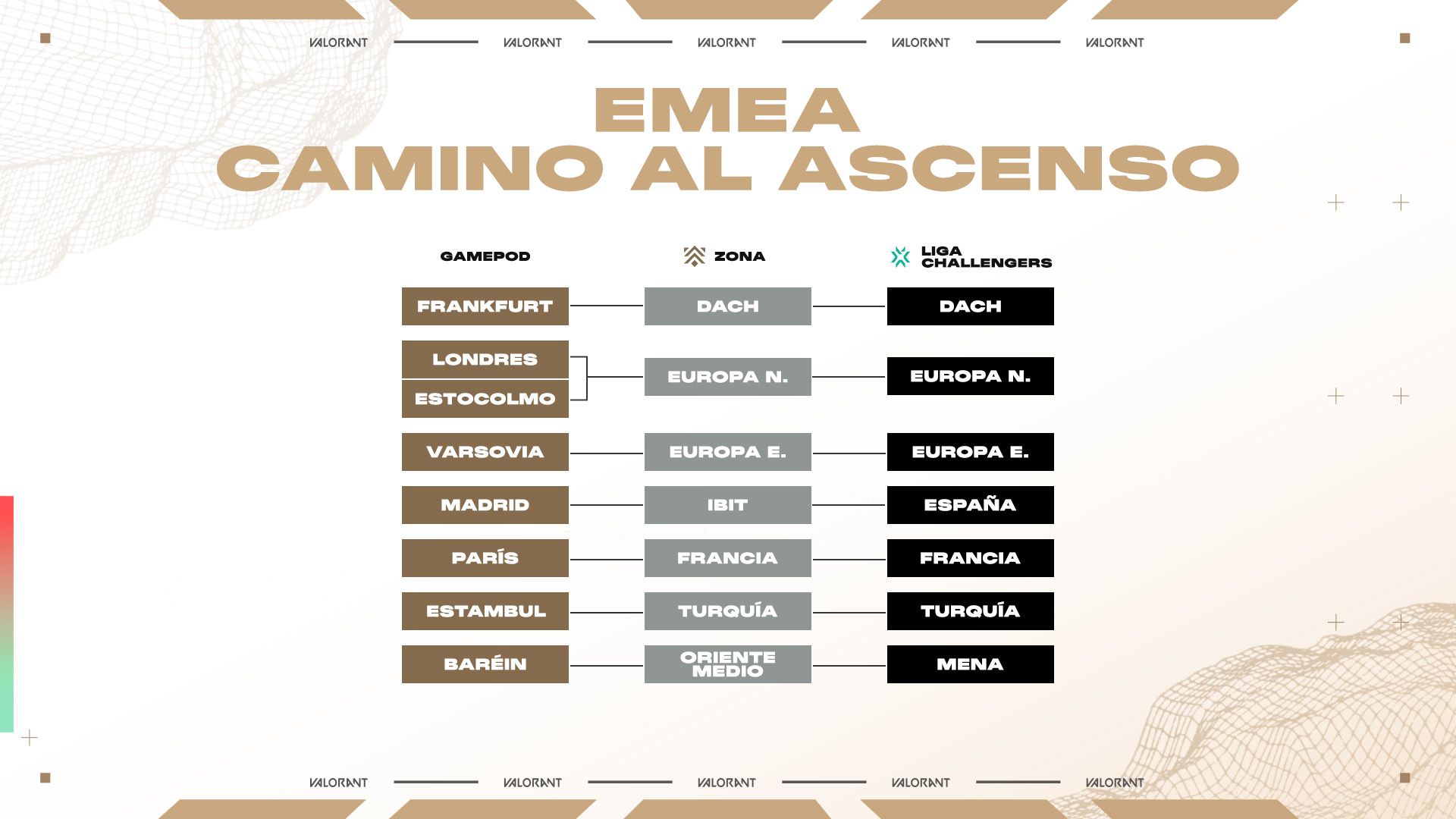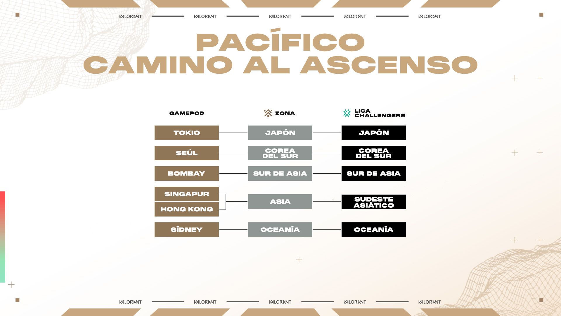 Debido a estos cambios, los formatos de Ascension se modificarán para tener en cuenta distintas posibilidades, como que ambos equipos de Ascension sean relegados y sea necesario incorporar dos nuevos equipos Challenger al evento. Estamos proporcionando más flexibilidad a las ligas regionales para crear formatos únicos que se adapten mejor a sus necesidades, asegurándonos de que sigan conectadas con Premier y Ascension. Las ligas anunciarán sus formatos de competencia y detalles sobre sus torneos de Ascension más adelante en 2025.