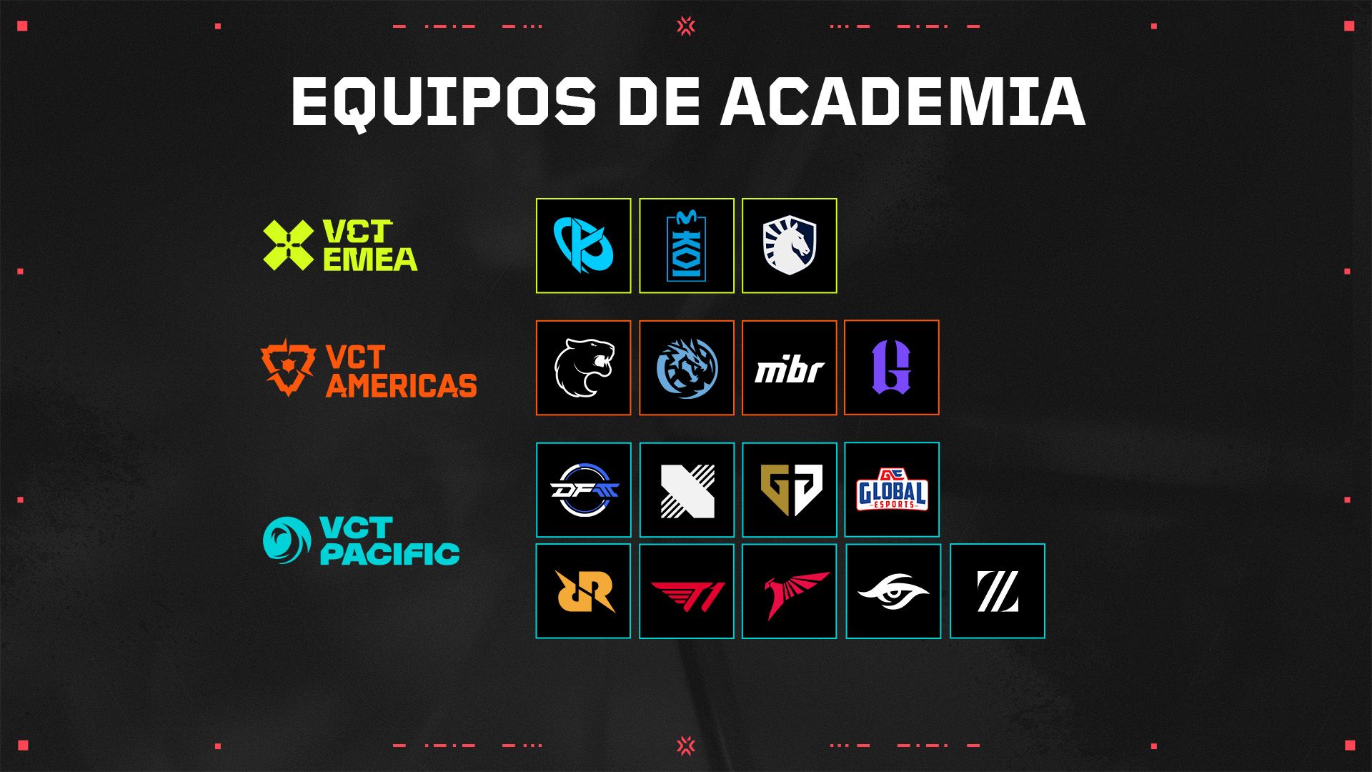 Recientemente anunciamos que en 2025 los equipos asociados podrán tener equipos de academia en Challengers para formar a nuevos talentos para sus rosters y brindar más oportunidades a los jugadores. Aunque los equipos de academia no podrán clasificar para Ascension, nos alegra aumentar el apoyo al ecosistema de Challengers. ¡No te pierdas a los nuevos jugadores promesa en los equipos de academia de todo el mundo!