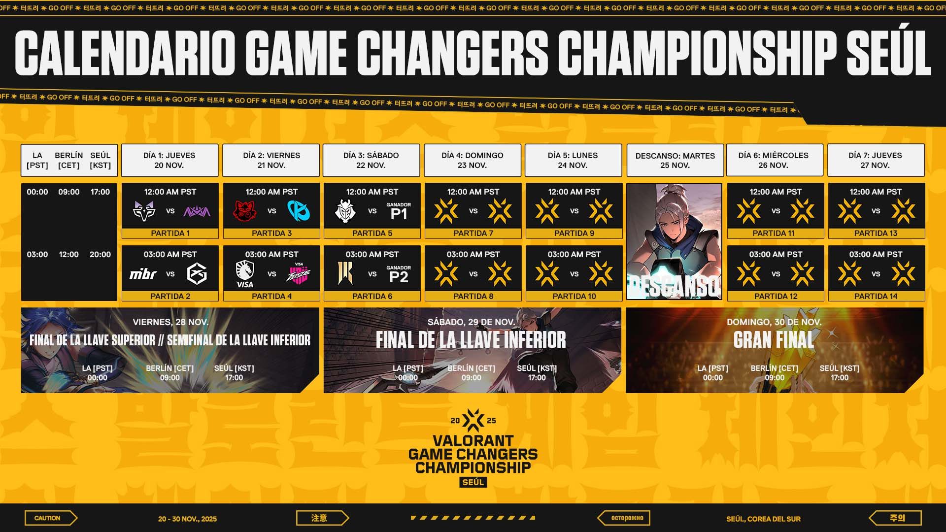A lo largo de 10 días, las partidas del torneo comenzarán a las 17:00 (Seúl) // 9:00 (Berlín) // 1:00 (Los Ángeles):