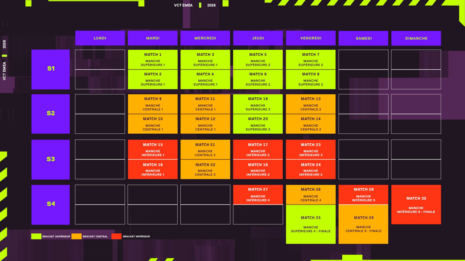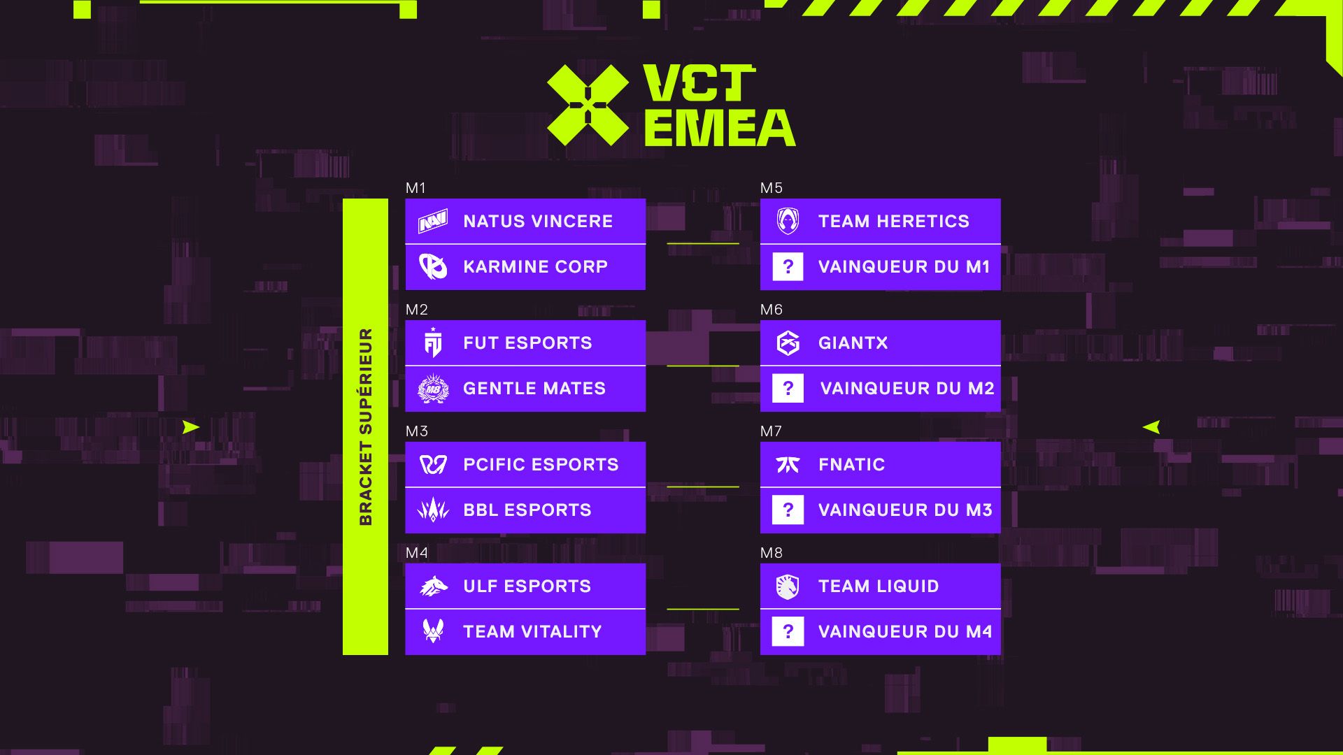 Le KICKOFF du VCT EMEA se jouera en bracket à triple élimination. Cela laissera le temps aux nouvelles équipes de s'acclimater, et aux fans de profiter de duels inédits et palpitants.