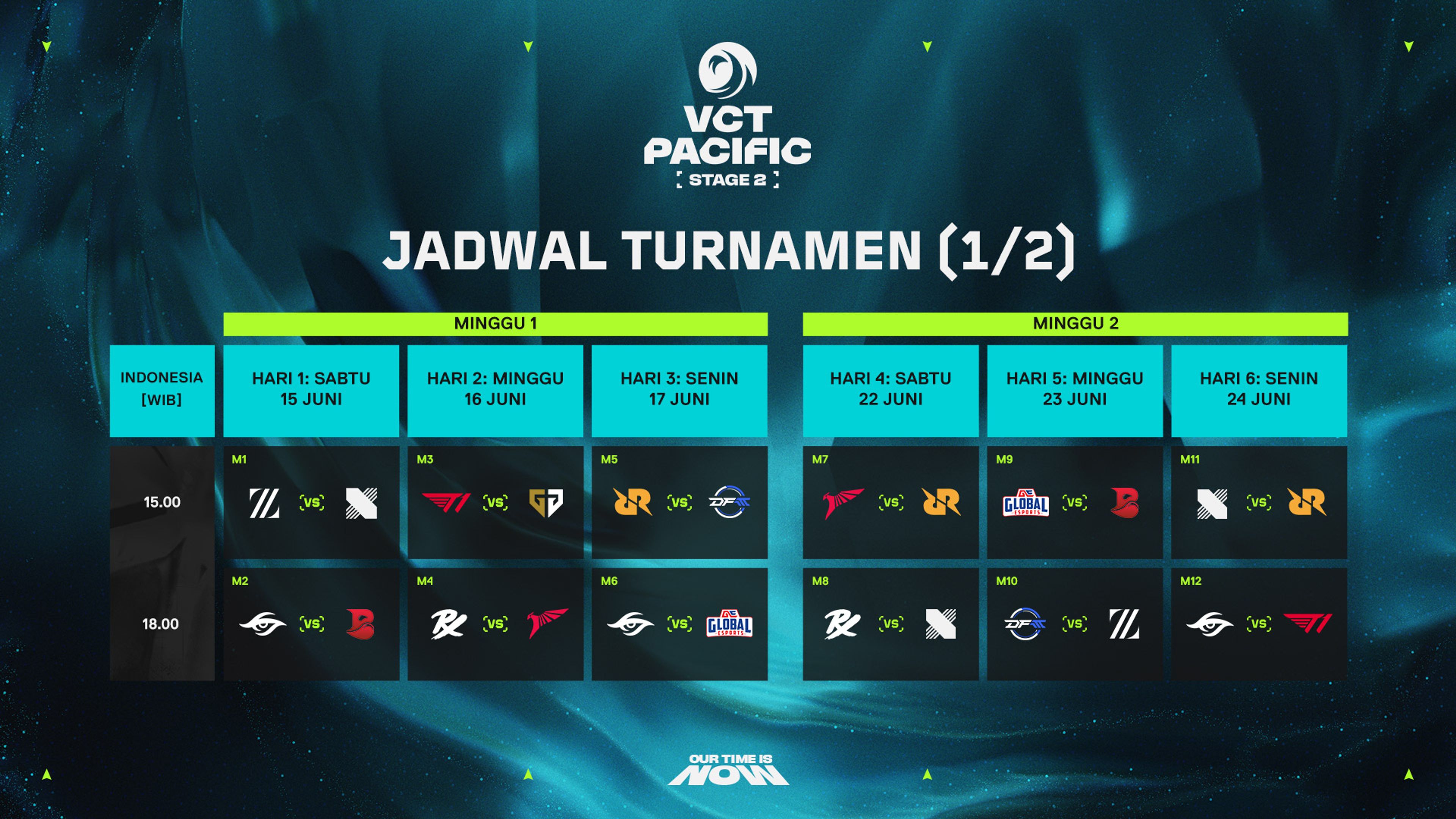 Stage 2 akan menampilkan tim-tim yang bersaing di grup Alpha dan Omega masing-masing demi lolos kualifikasi ke Playoff Stage 2. Lihat video penjelasan format ini untuk mengingat-ingat lagi format VCT Pacific tahun ini.