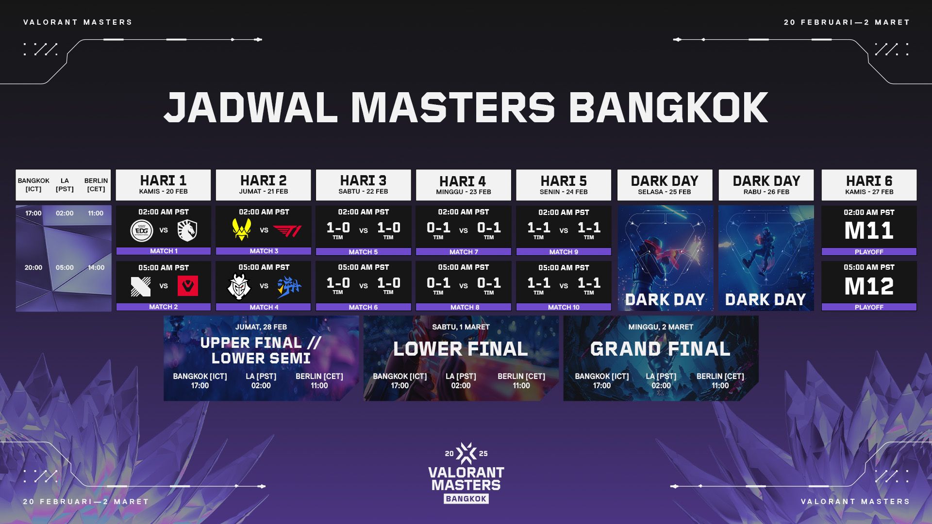 Pastikan kamu mengikuti channel media sosial resmi VALORANT Esports untuk informasi tambahan tentang Masters Bangkok: