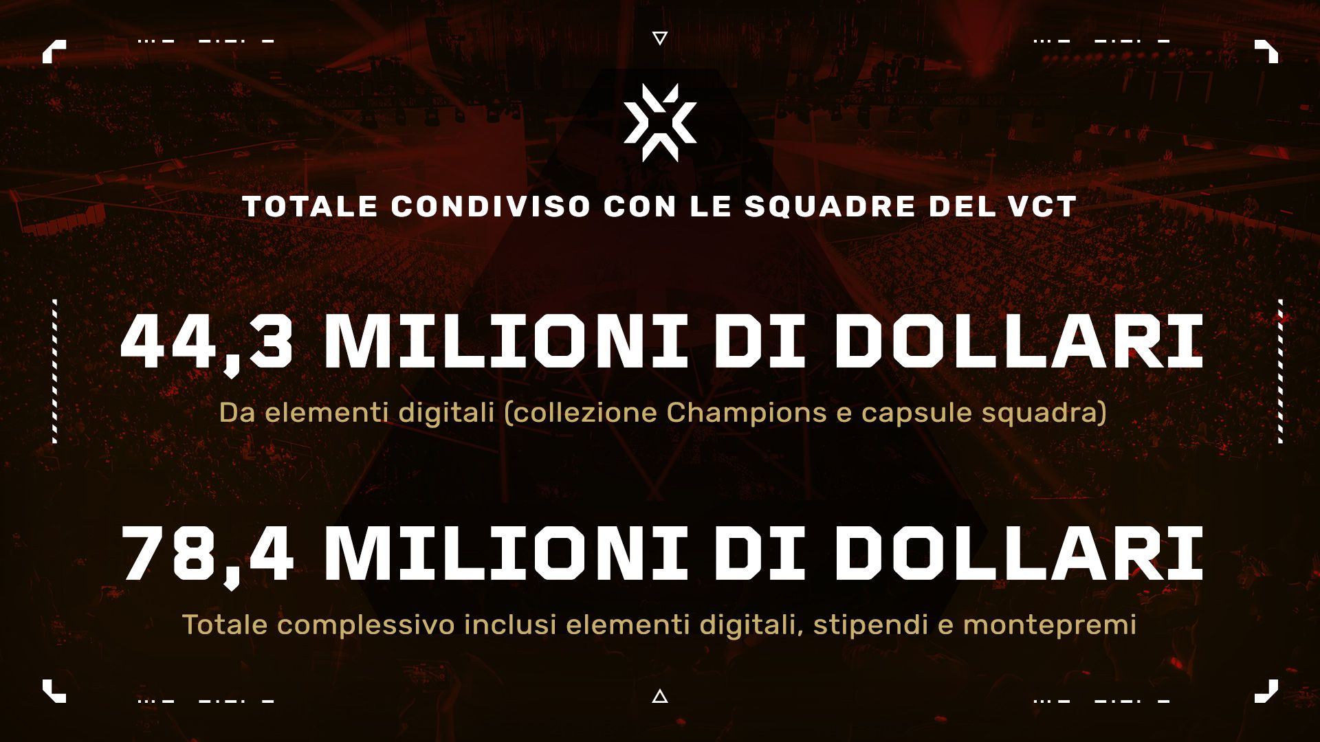Grazie ai giocatori, il VCT ha condiviso 78,4 milioni di dollari con le squadre, di cui 44,3 milioni solo dagli elementi grafici digitali