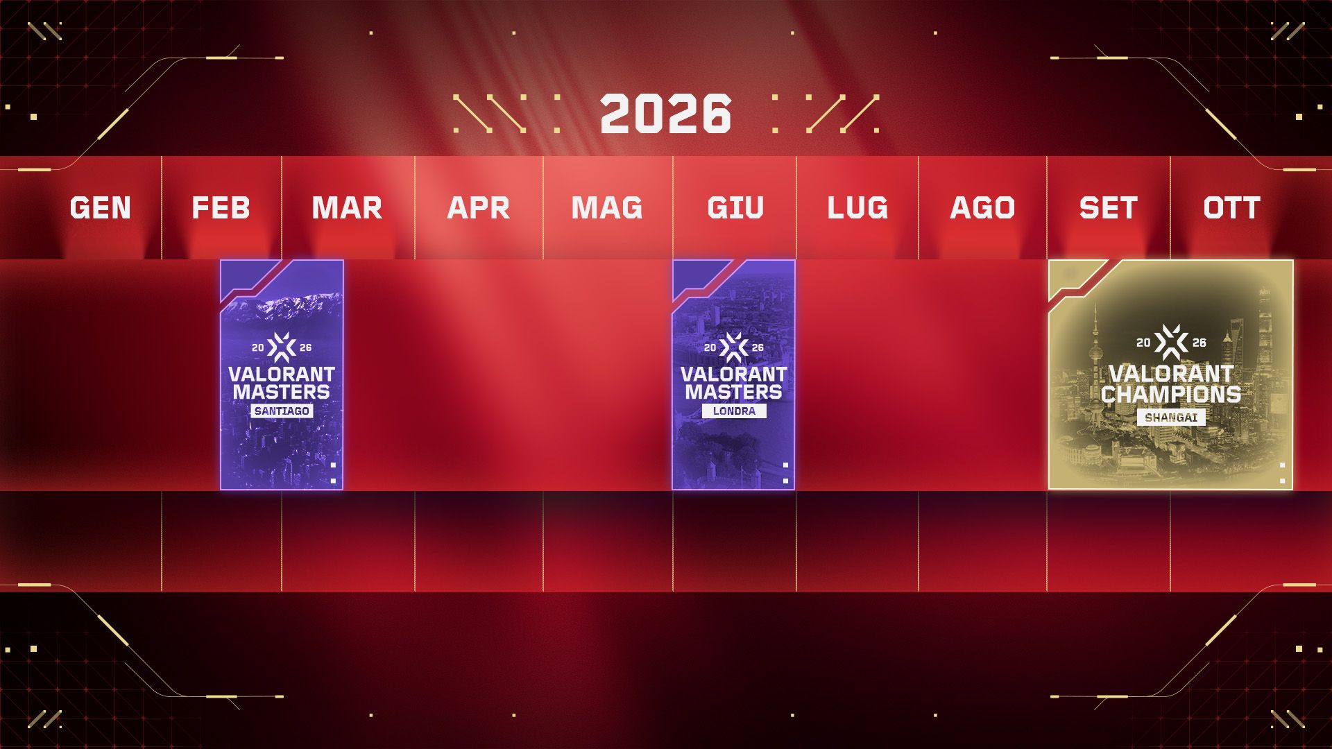 Con la conclusione della stagione 2025 in vista, siamo pronti a condividere i dettagli della prossima stagione dell'eSport di VALORANT! Nel 2026 vedremo più eventi, nuovi formati e un’incredibile opportunità per le squadre Challengers in cerca di un’opportunità per il Champions.