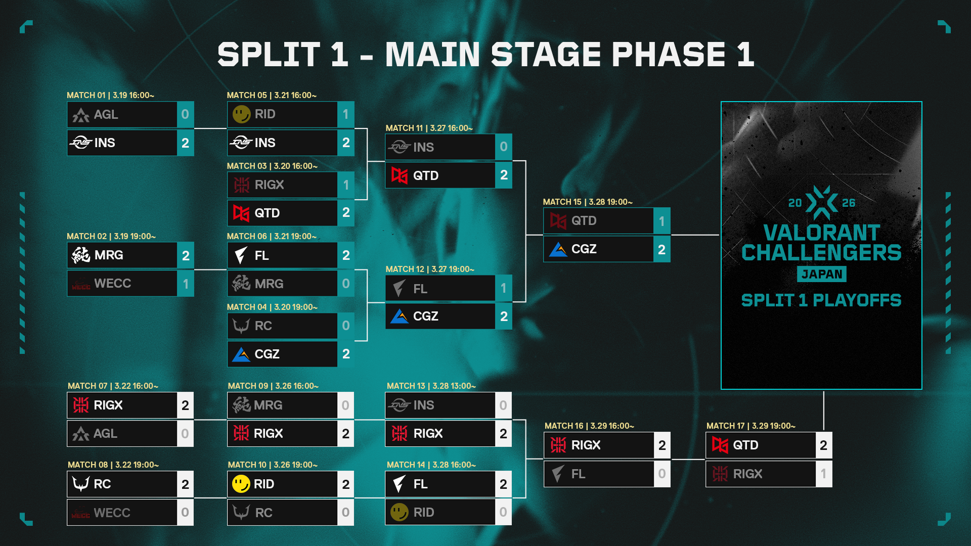 VALORANT Challengers Japan 2026 Split 1 Main Stage Phase 1 結果