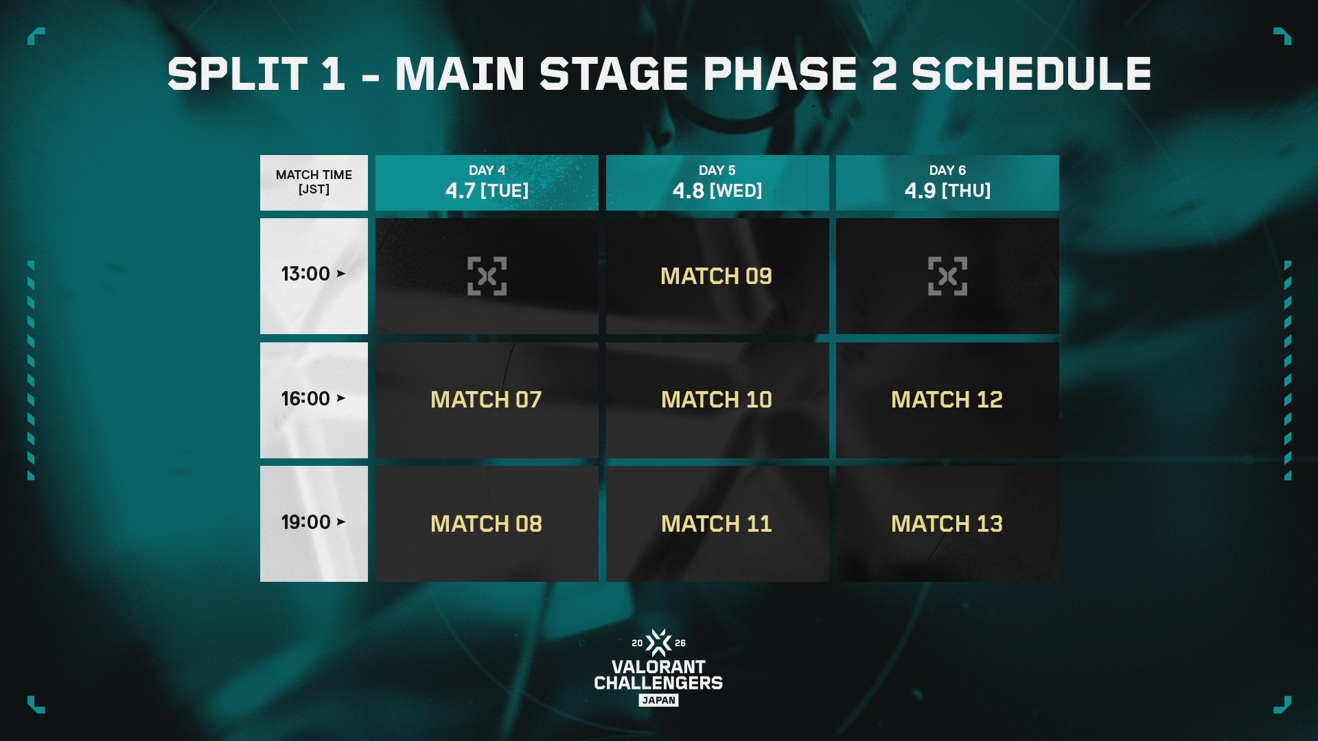 VALORANT Challengers Japan 2026 Split 1 Main Stage Phase 2は、4月1日(水)15:45より開幕!