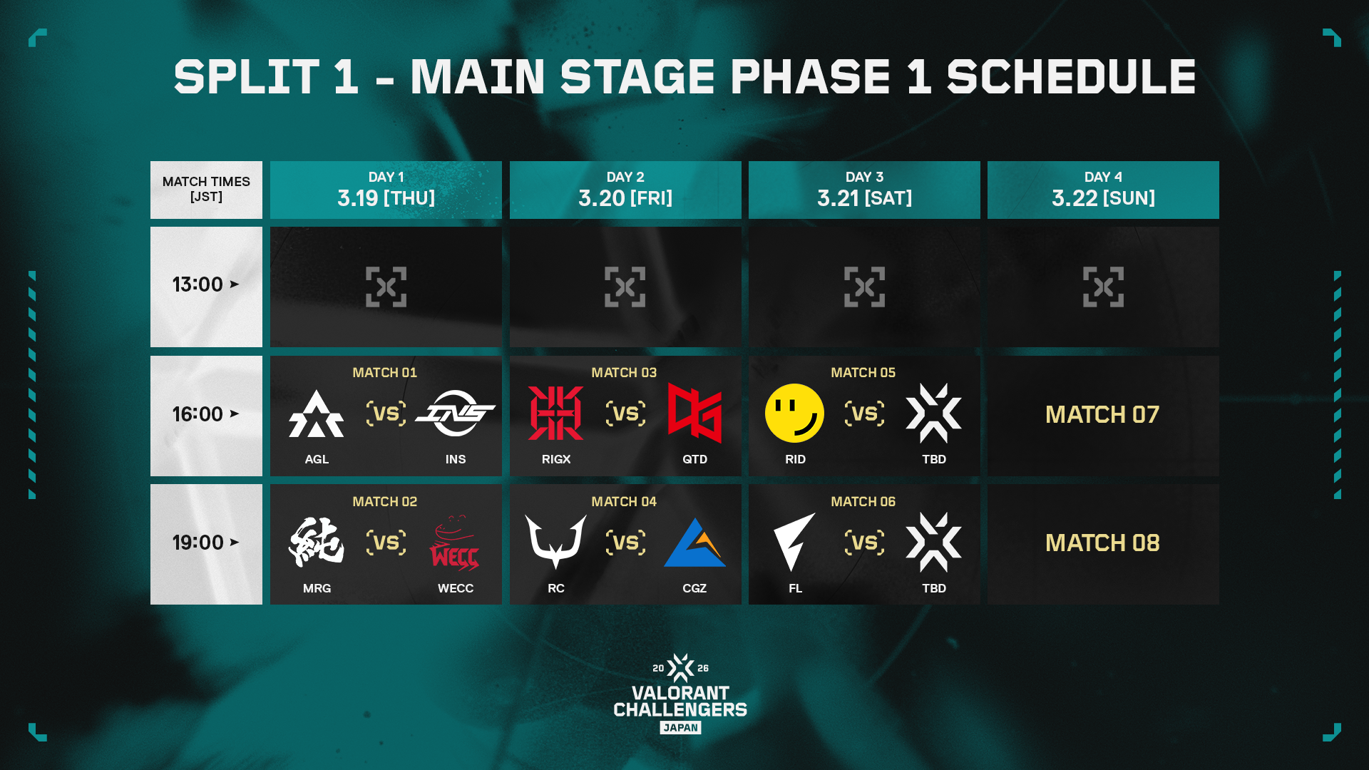 VALORANT Challengers Japan 2026 Split 1 Main Stage Phase 1は、3月19日(木)15:45より開幕!