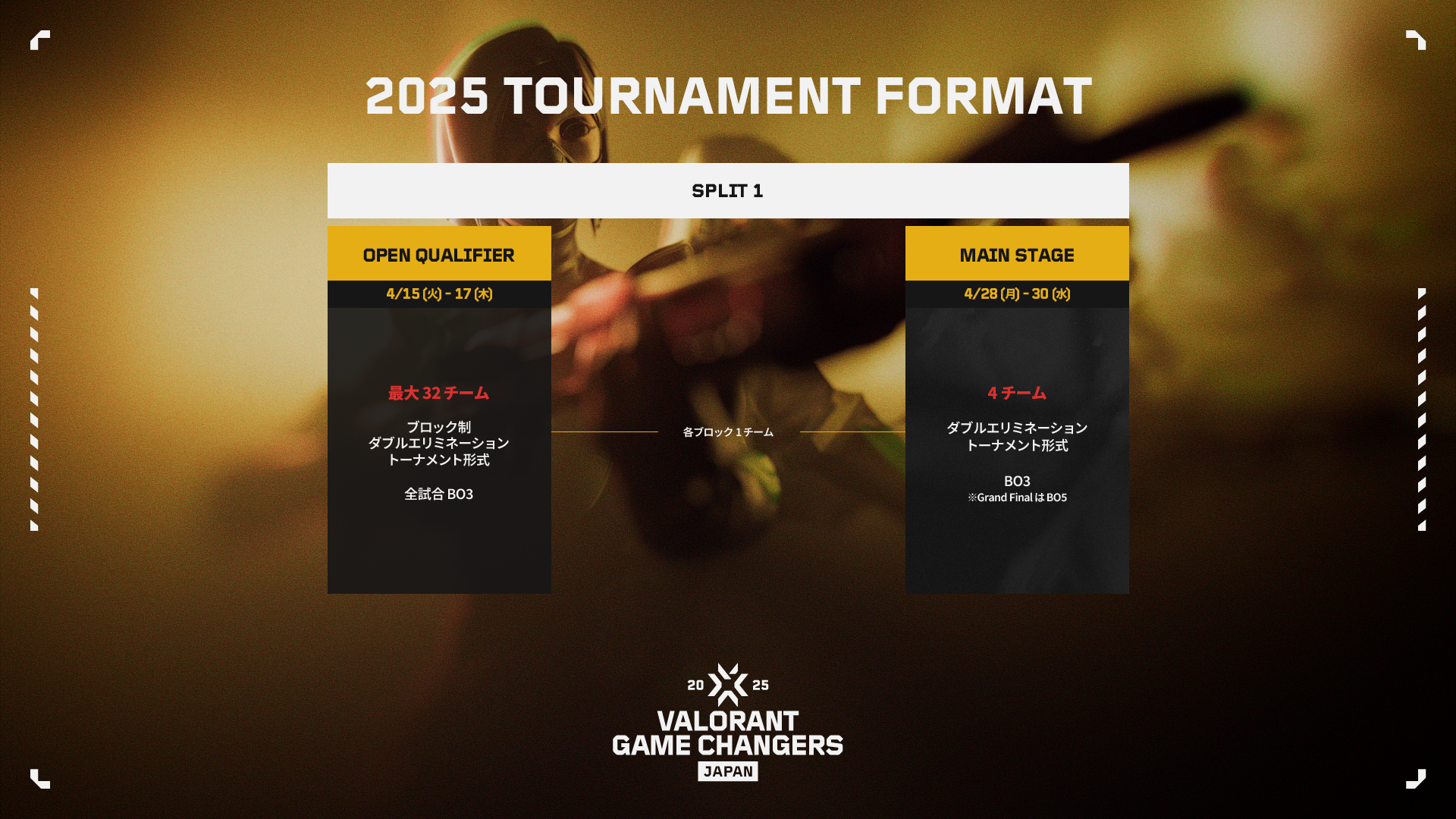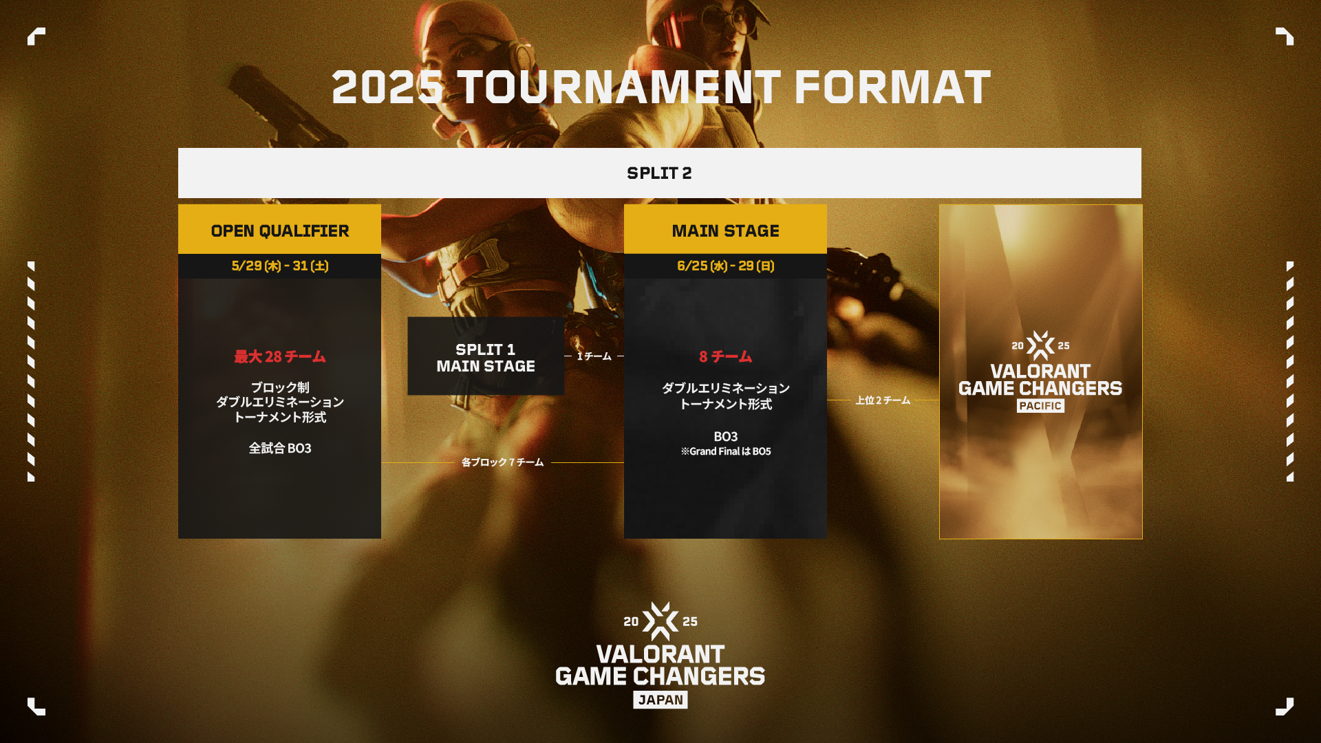VALORANT Game Changers Japan 2025は、昨年と同様に2 Split制で開催されます。