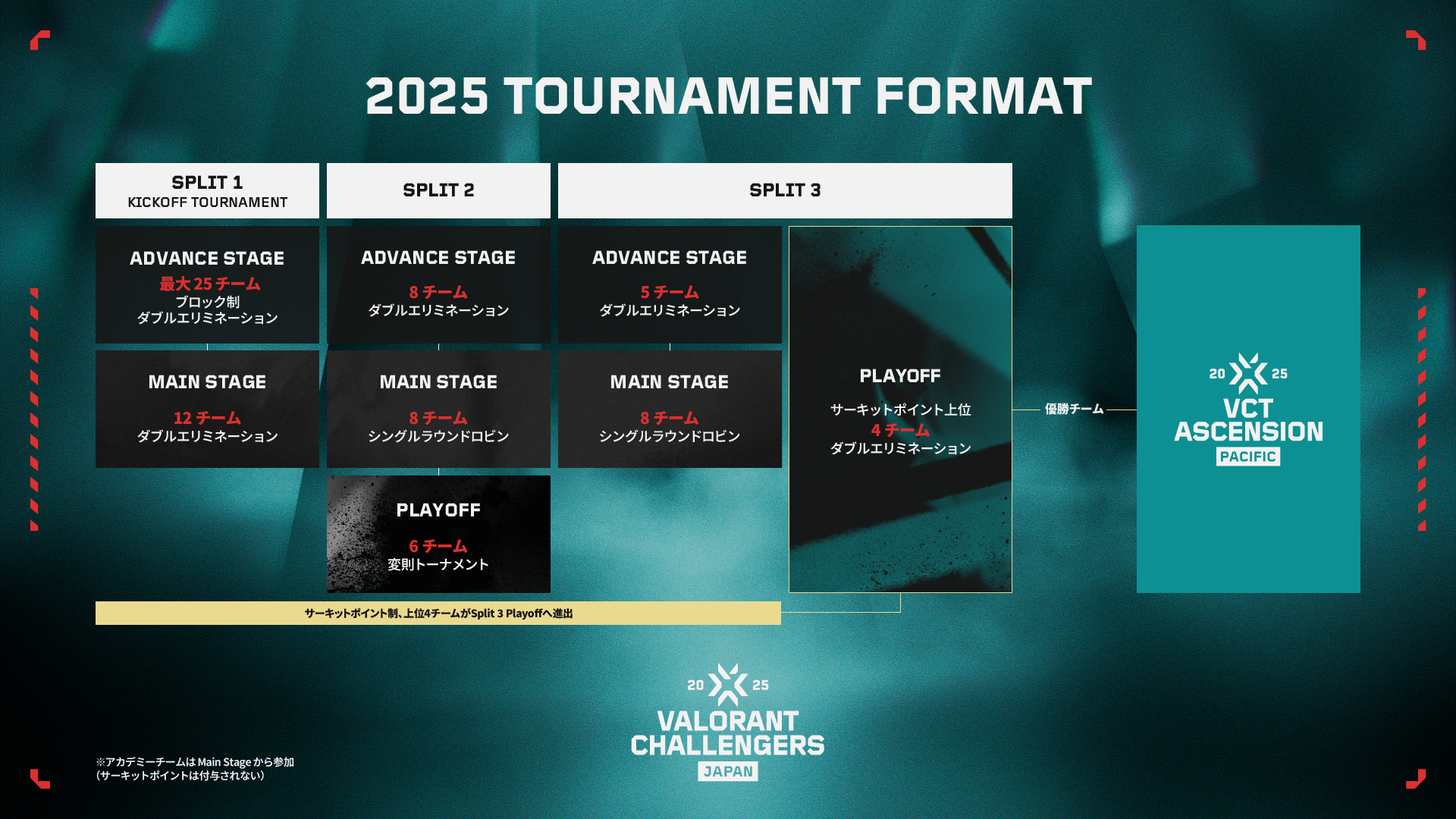 2025年、VALORANT Challengers Japanはサーキットポイント制を導入した3 Split制で1年間の激戦を繰り広げます!