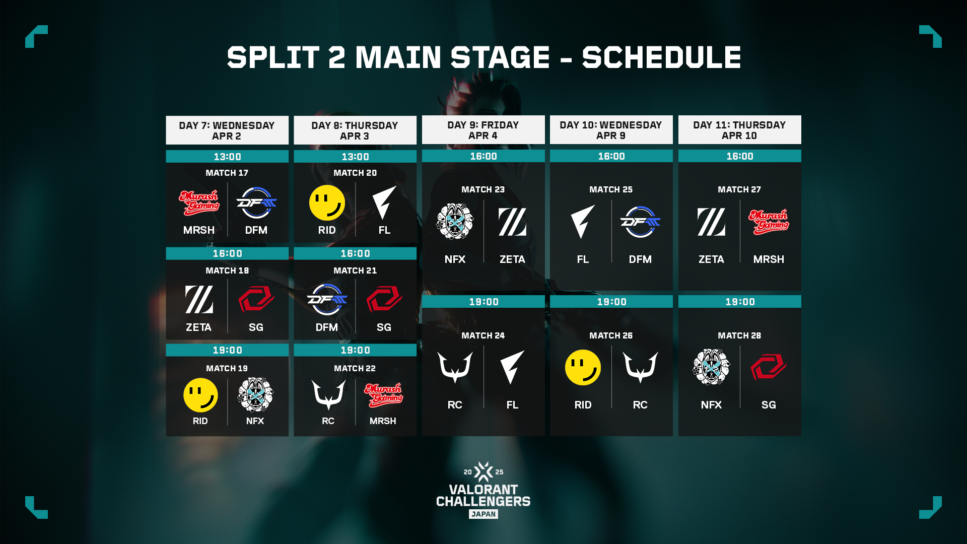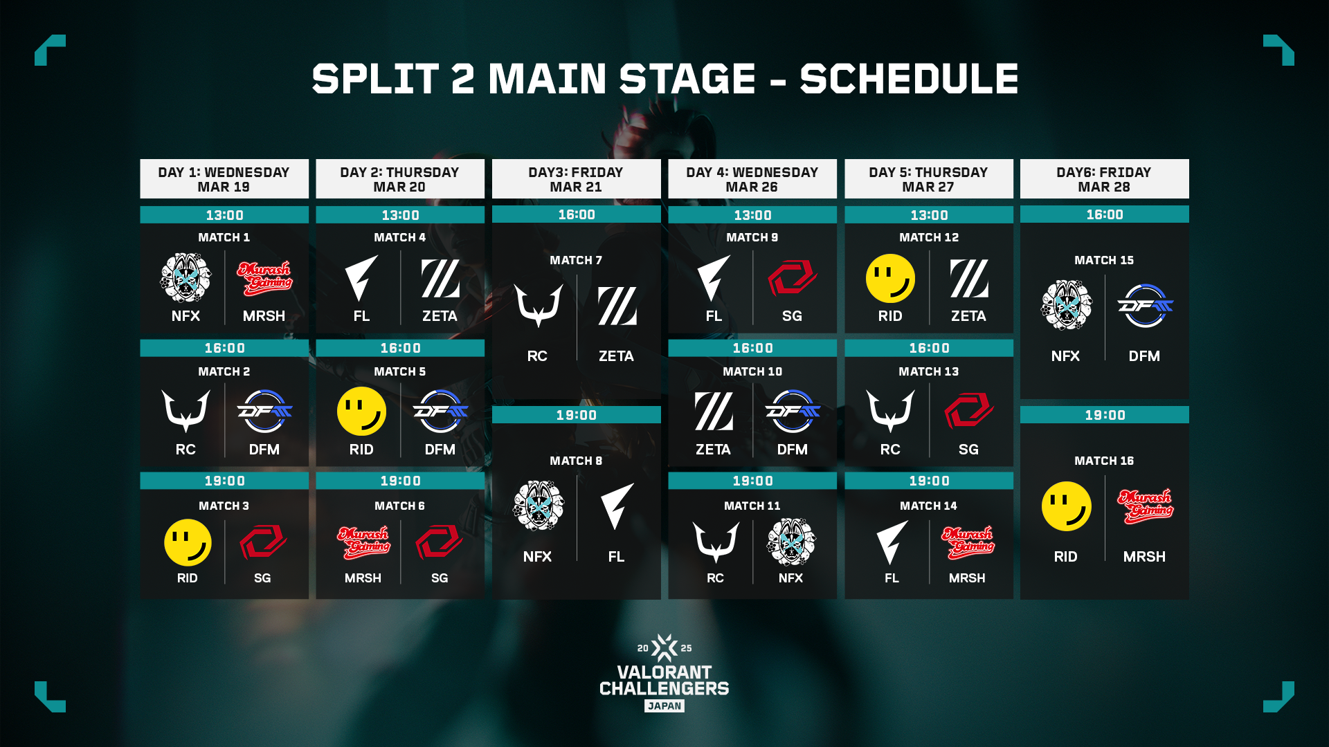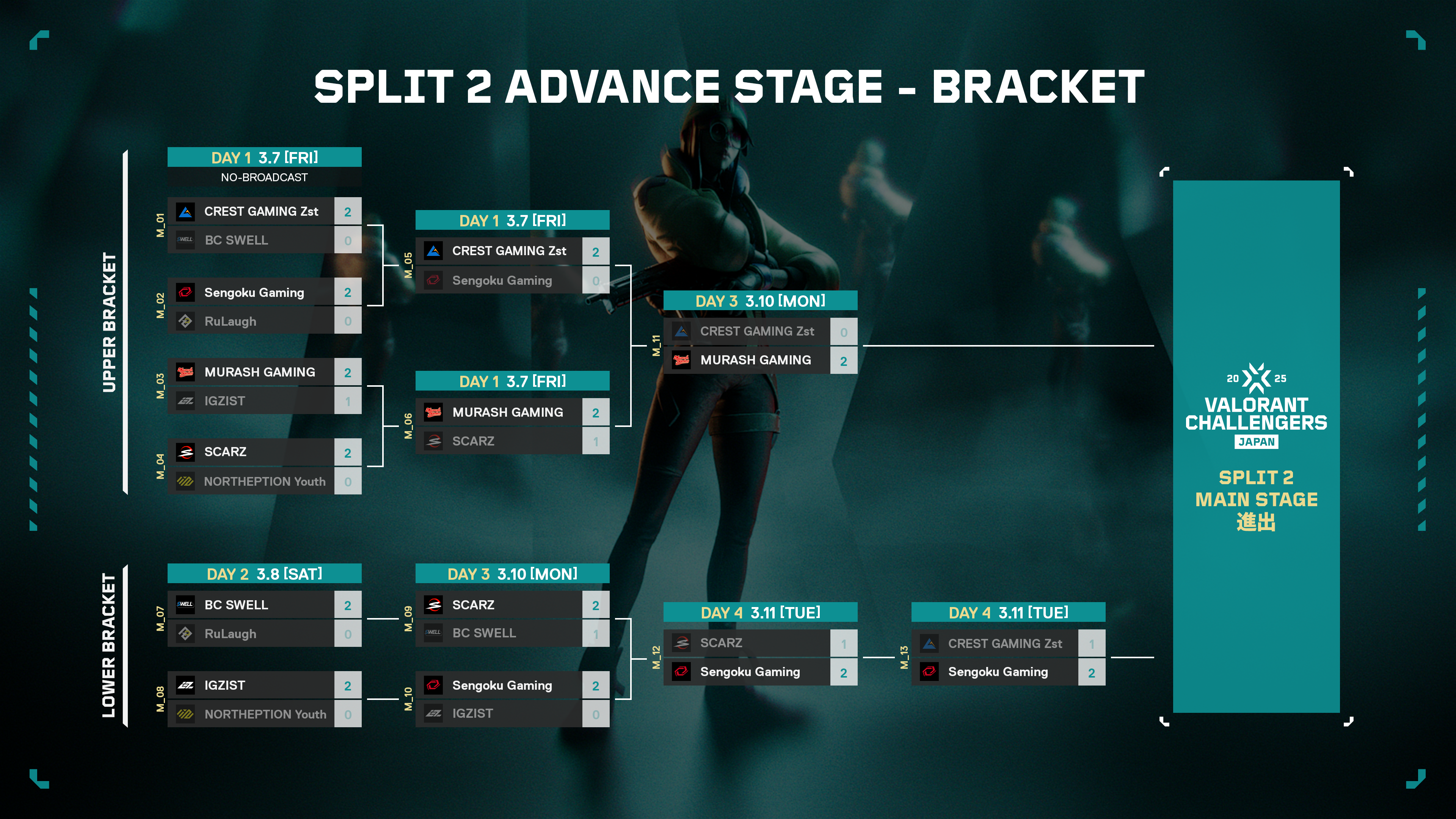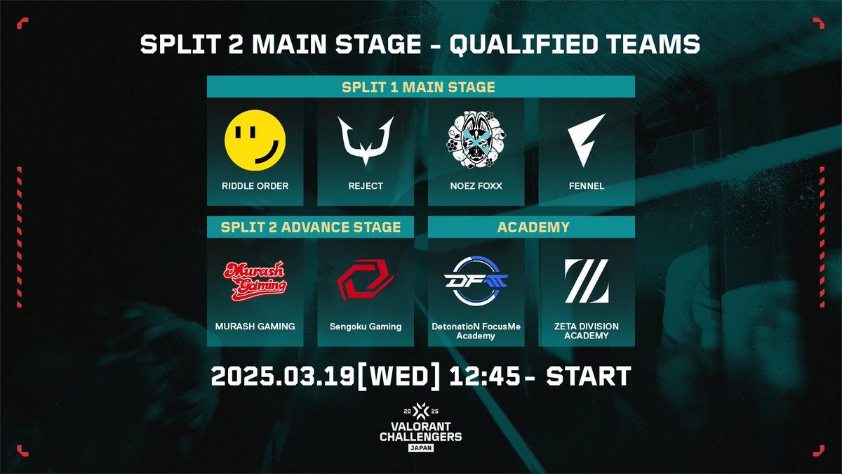 Split 1 Main Stageで上位となった4チーム、今回Split 2 Advance Stageを突破した2チーム、そして今年からMain Stageに参戦するアカデミーチーム2チームを加えた計8チームで、3月19日(水)から第二幕がスタートします。