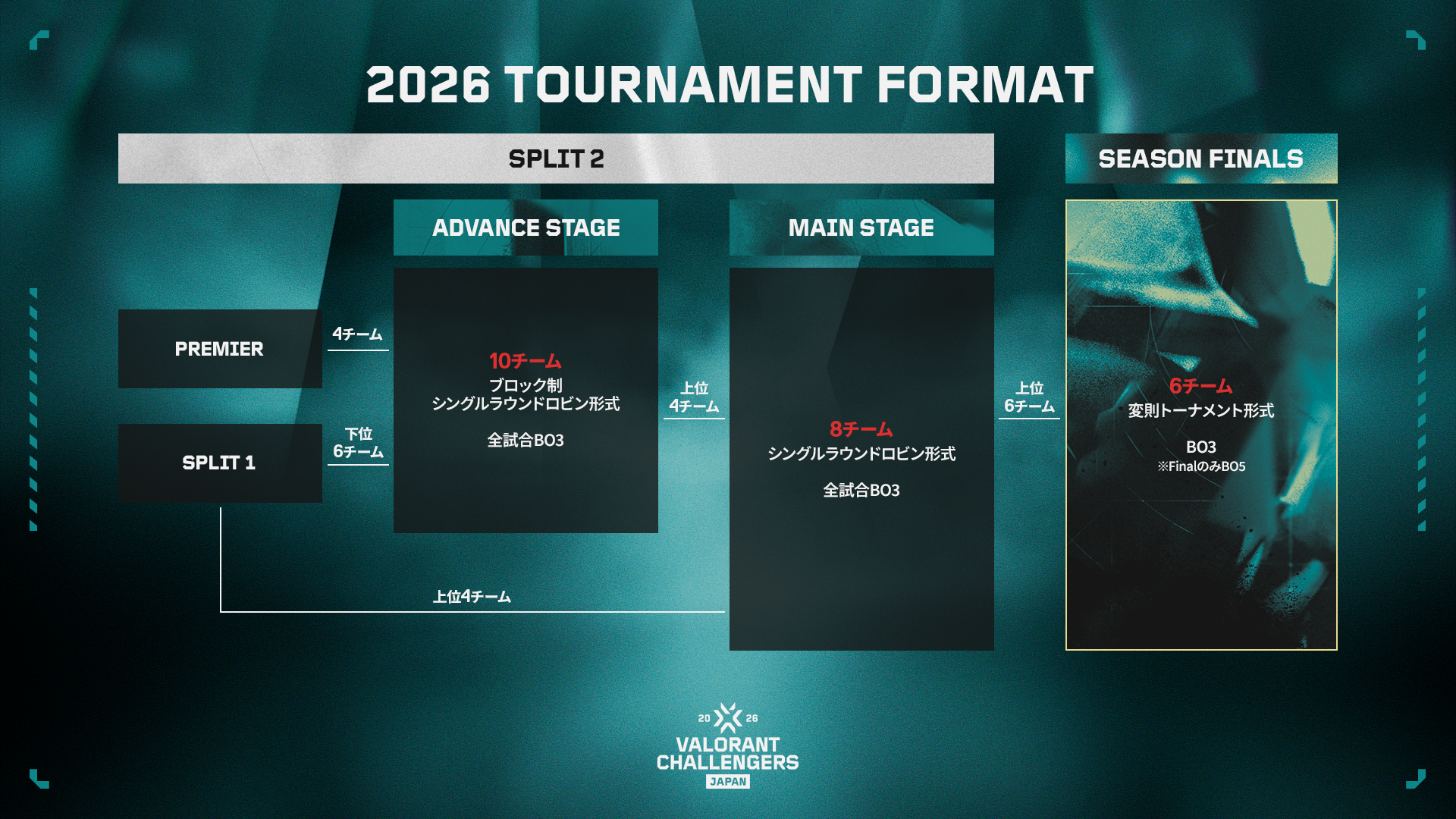 2026年、VALORANT Challengers Japanは2つのSplitで1年間のシーズンを戦います。