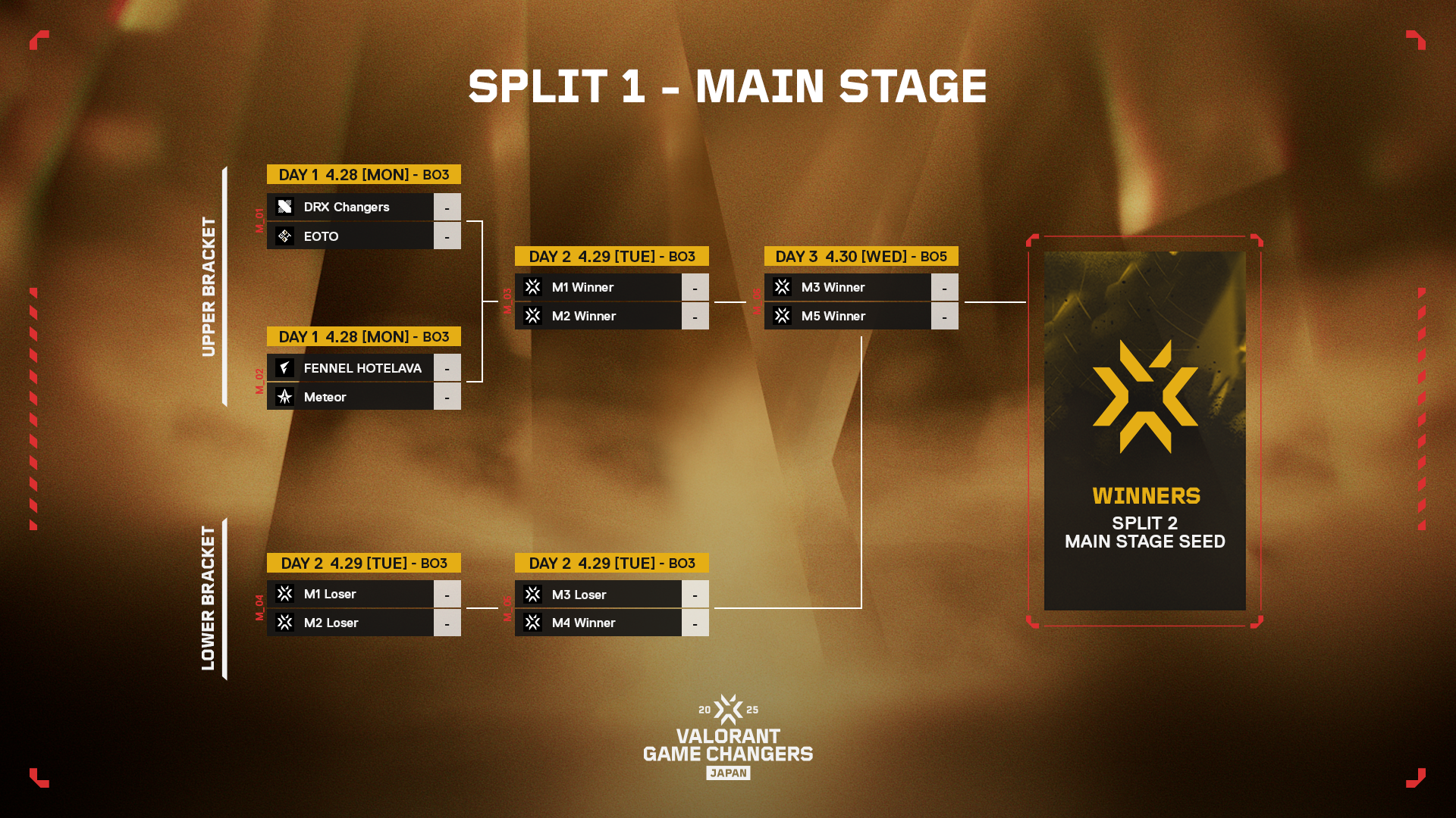 VALORANT Game Changers JAPAN 2025 Split 1 Main Stage トーナメント表