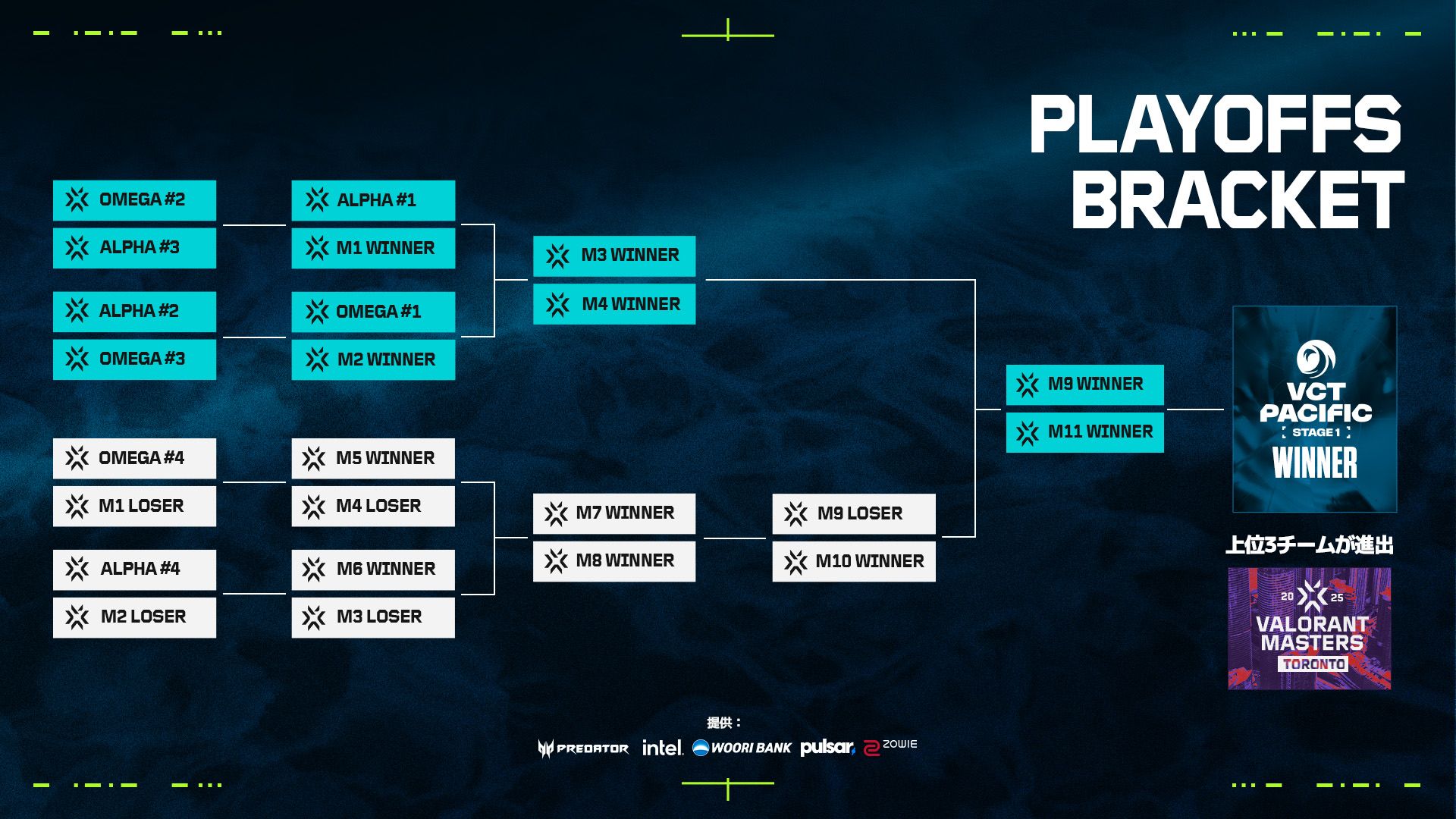 4月26日から5月11日まで行われるStage 1プレイオフで、VCT Pacificの上位8チームがMasters Torontoへの出場権を賭けて戦います。