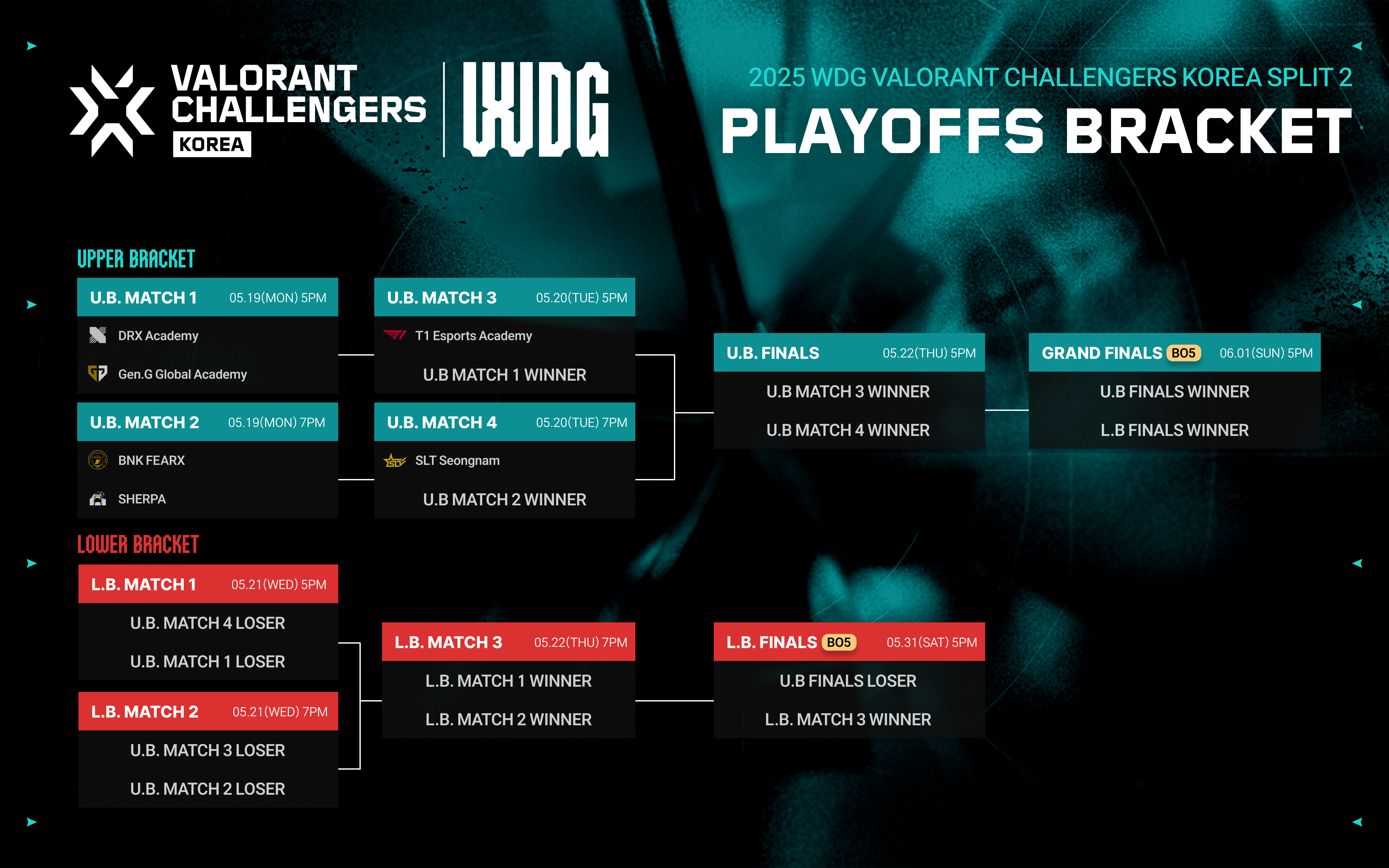 지난 4월 23일 개막한 2025 WDG 발로란트 챌린저스 코리아 스플릿 2가 본선 일정을 마무리하고, 5월 19일 플레이오프에 돌입합니다.