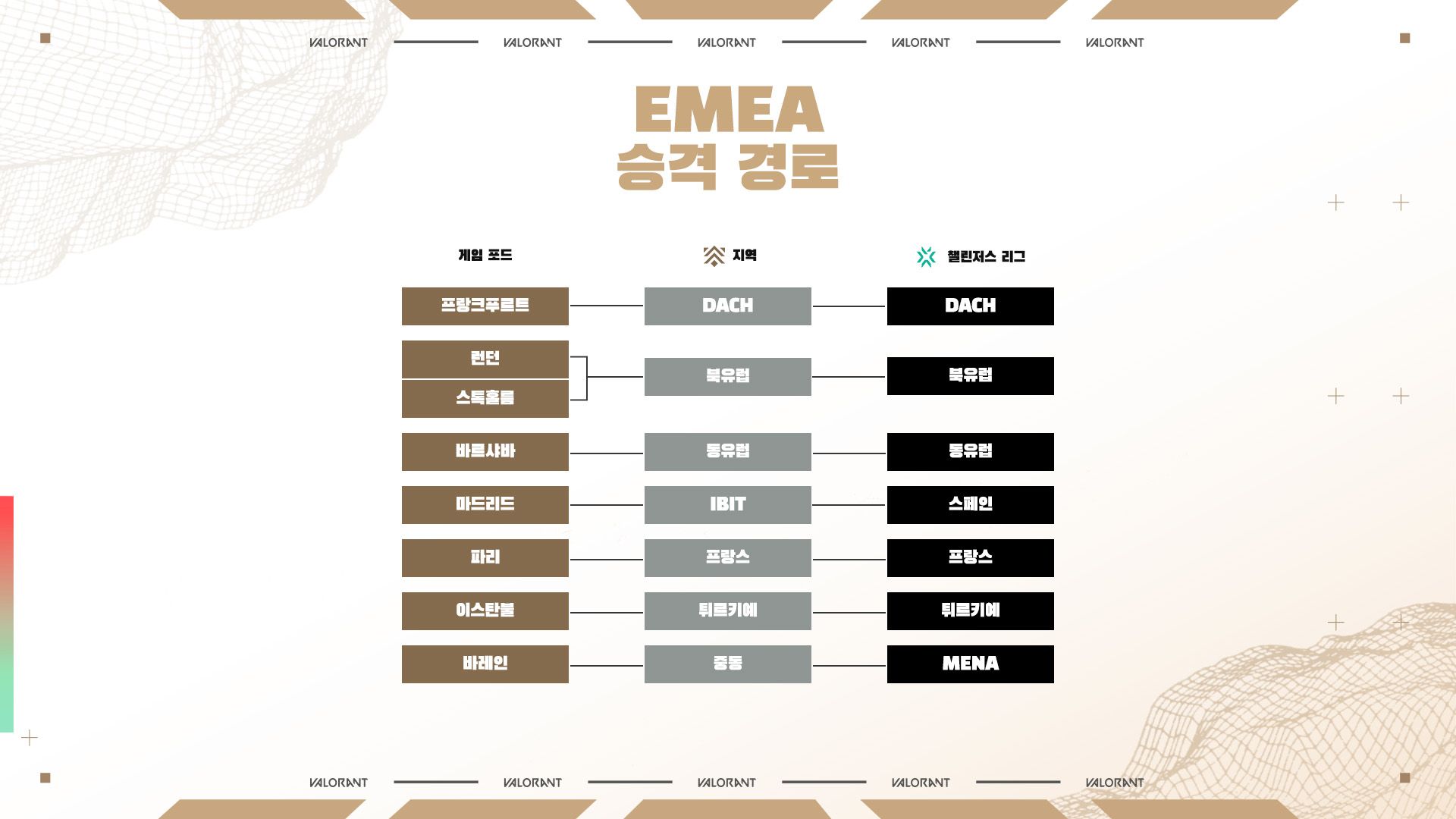 올해 초 저희는 프리미어 최고 수준의 무대인 초청 디비전을 발표했습니다. 최상급과 달리 초청 디비전에 진입하는 유일한 방법은 프리미어 지역 최상급 팀으로 우승하는 것입니다. 프리미어 지역은 챌린저 리그와 연결되어 있어, 선수가 게임 내 경쟁에서 VCT로 자연스럽게 나아가는 진로가 되어줄 것입니다.