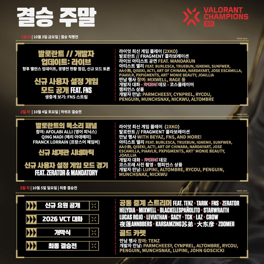 해당 패널에서는 발로란트 챔피언스 투어가 2026 시즌으로 향하는 과정에서 새로운 대회 진행 방식, 글로벌 개최 전략, 진화하는 모델 등 발로란트 e스포츠의 미래를 다룹니다.