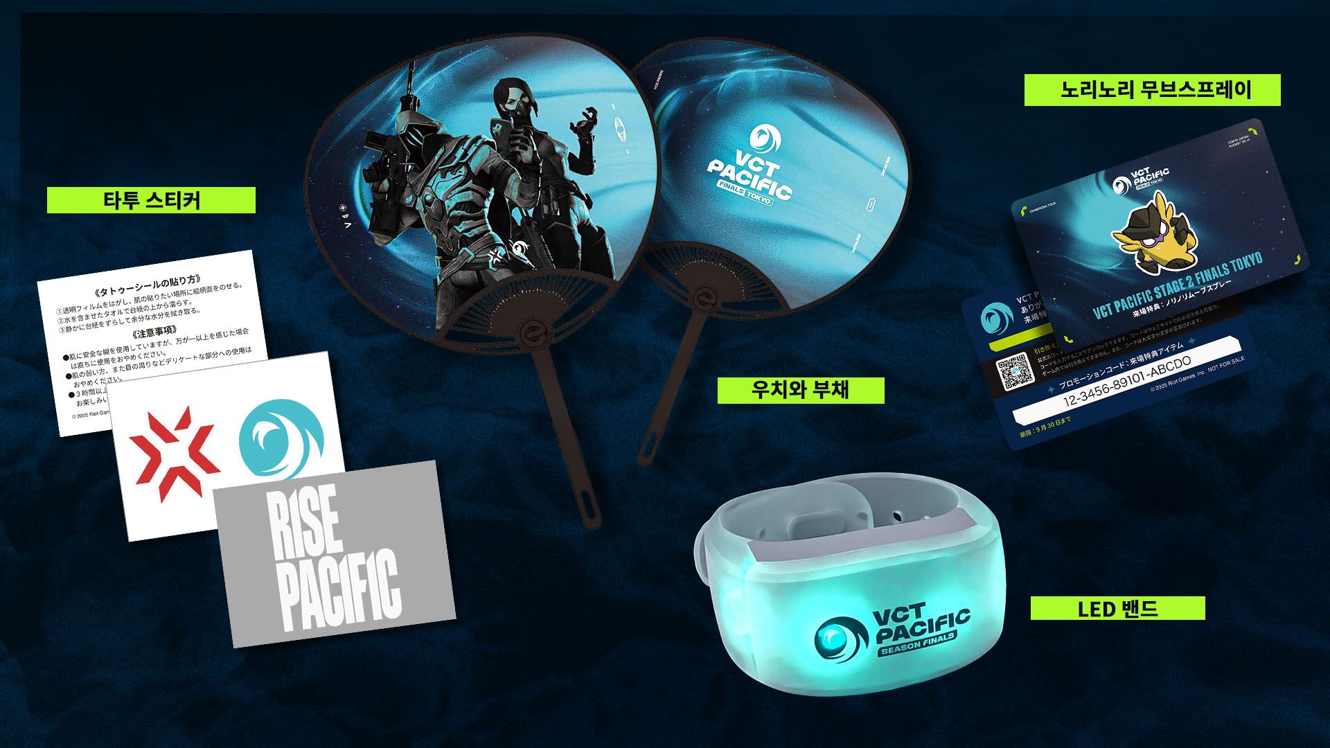 결승전 주말 동안 LaLa arena TOKYO-BAY에서만 판매되는 한정판 VCT Pacific 상품을 손에 넣어 보세요! 티셔츠부터 핀, 토트백, 버킷햇, 수건 등 다양한 상품이 준비되어 있습니다.