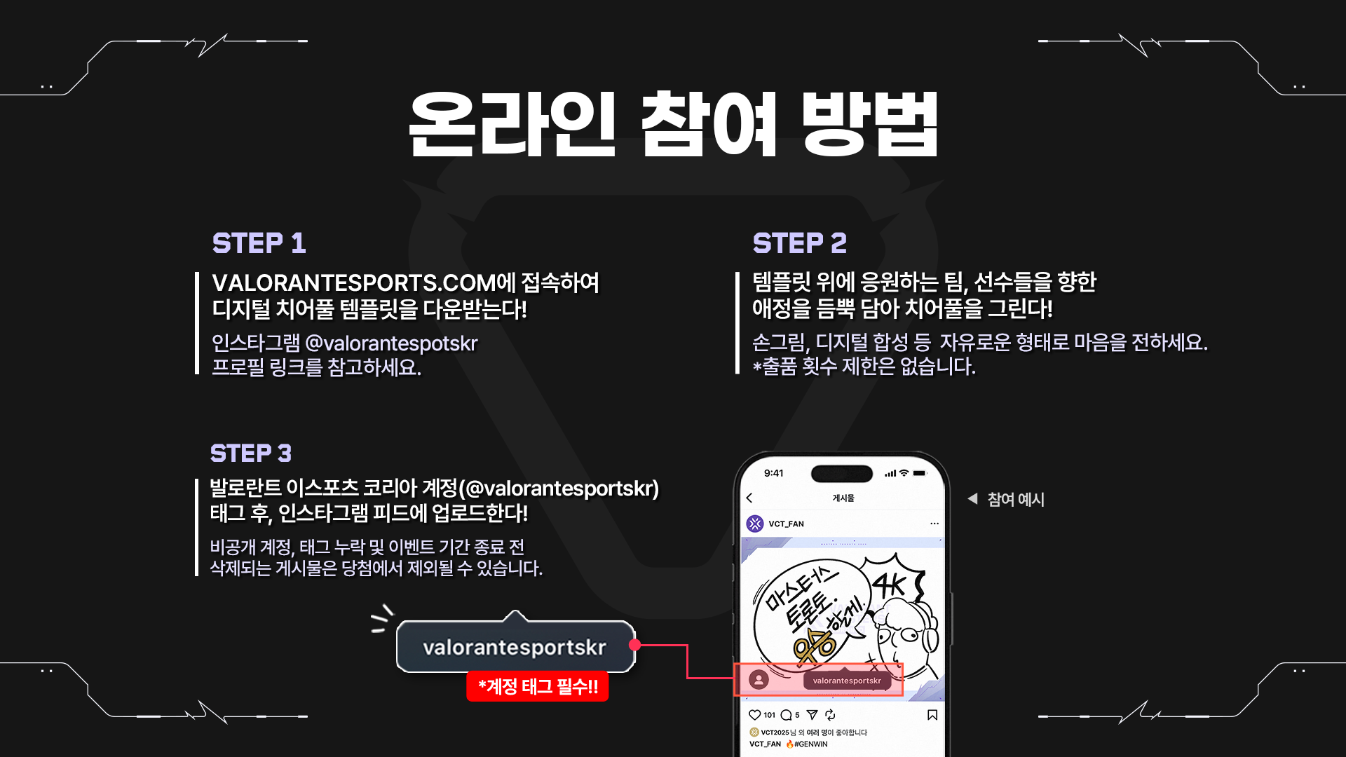 본 이벤트는 발로란트 챔피언스 투어 공식 인스타그램(@valorantesportskr) 팔로워 대상으로 진행됩니다.