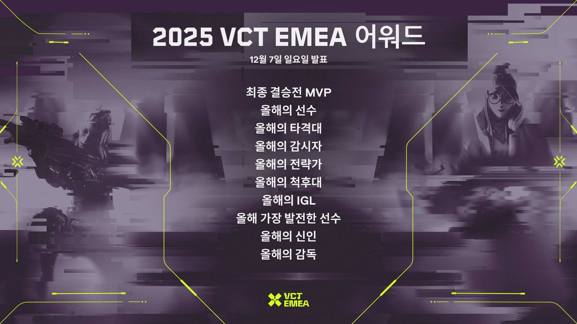 12월 7일부터 각 지역은 VCT 어워드 수상자 발표를 시작할 것입니다.