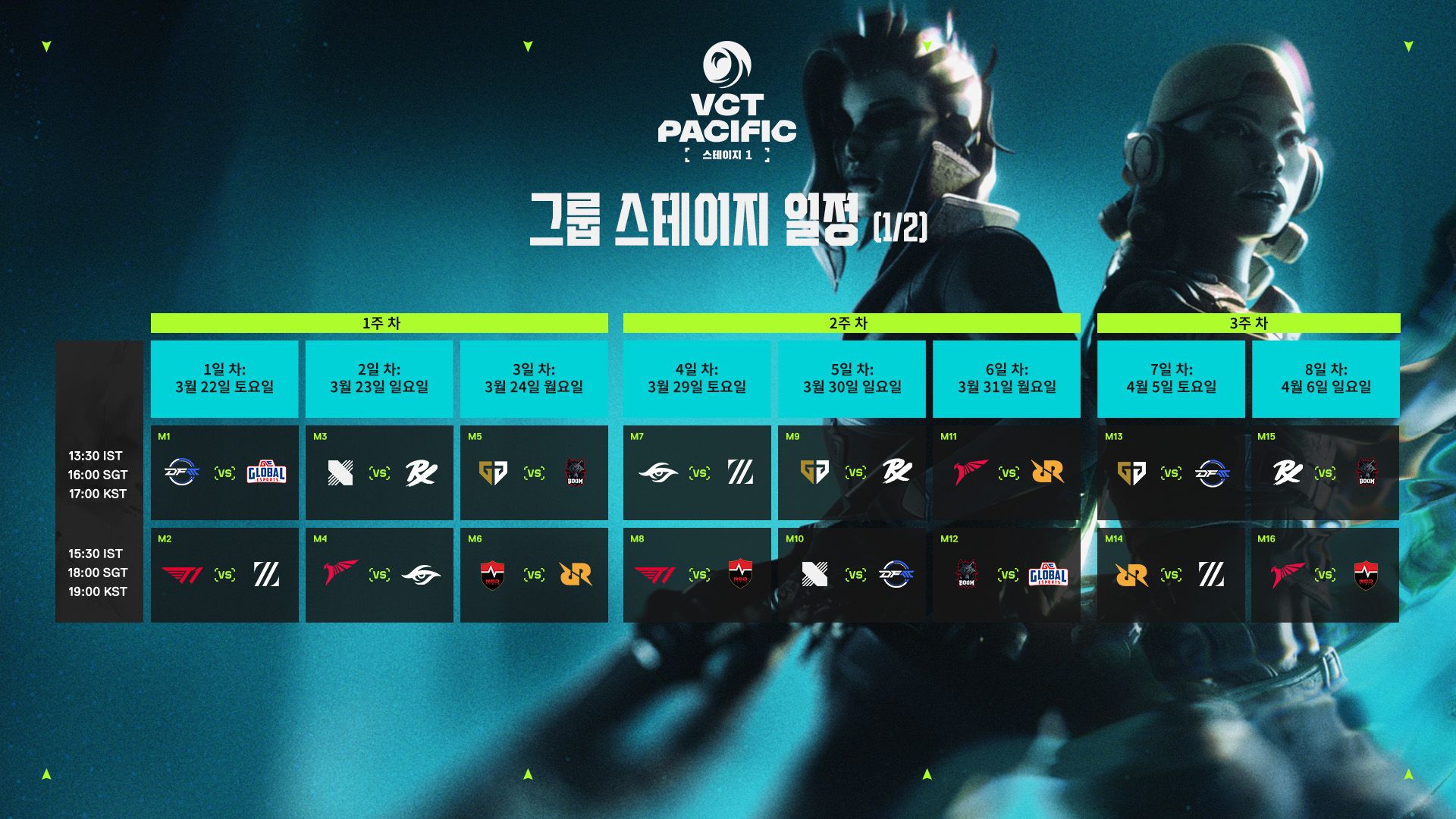 VCT Pacific 스테이지 1은 3월 22일부터 5월 11일까지 진행됩니다.
