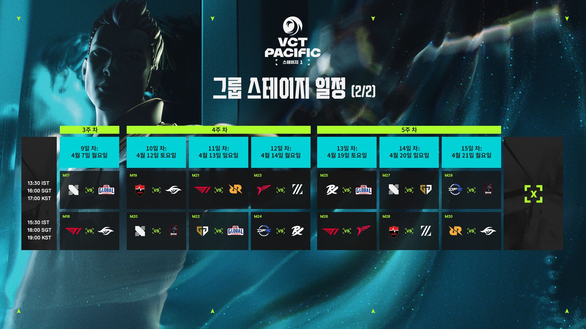 VCT Pacific 일정은 주기적으로 업데이트되며, VALORANTESPORTS.com에서 확인하실 수 있습니다.