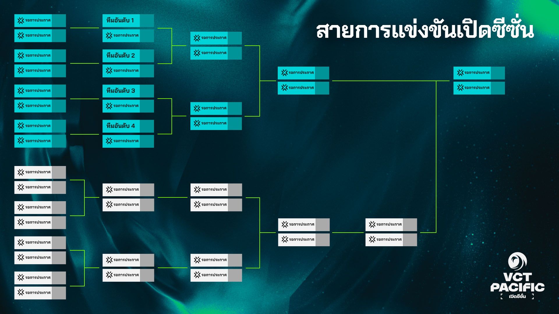 เราจะเปิดซีซั่นกันด้วย VCT Pacific Kickoff ในวันที่ 18 มกราคมถึง 9 กุมภาพันธ์ ทั้ง 12 ทีมจะต้องแข่งกันในรูปแบบแพ้สองครั้งคัดออกตลอด 12 วัน โดย 4 ทีมที่ผ่านเข้ารอบ Champions 2024 จะถูกจัดให้เข้าไปอยู่ในรอบที่สองของสายบน ส่วนสองทีมจาก Ascension 2024 จะอยู่ในสายฝั่งตรงข้าม และทีมที่เหลือจะถูกจัดแบบสุ่มตามผลการจับสลาก