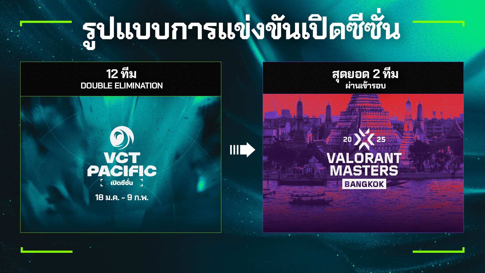 2 ทีมที่ได้อันดับสูงสุดจาก VCT Pacific Kickoff จะได้ตั๋วไปแข่งที่ Masters Bangkok ซึ่งเป็นการแข่งขันระดับโลกรายการแรกของปี 2025 และเป็นรายการแรกที่จัดขึ้นในเอเชียตะวันออกเฉียงใต้อีกด้วย