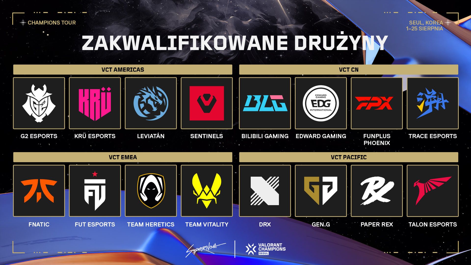 Od 1 do 25 sierpnia 16 najlepszych drużyn na świecie będzie rywalizować o trofeum Champions i tytuł mistrzów świata VALORANT! Champions to rozstrzygające wydarzenie serii VALORANT Champions Tour, będące jednocześnie kulminacją sezonu esportowych rozgrywek VALORANT. Przez cały rok najlepsze drużyny z całego świata rywalizowały w ligach międzynarodowych, aby zakwalifikować się poprzez zajęcie czołowych lokat w swoich ligach lub zdobycie największej liczby punktów mistrzostw w sezonie.