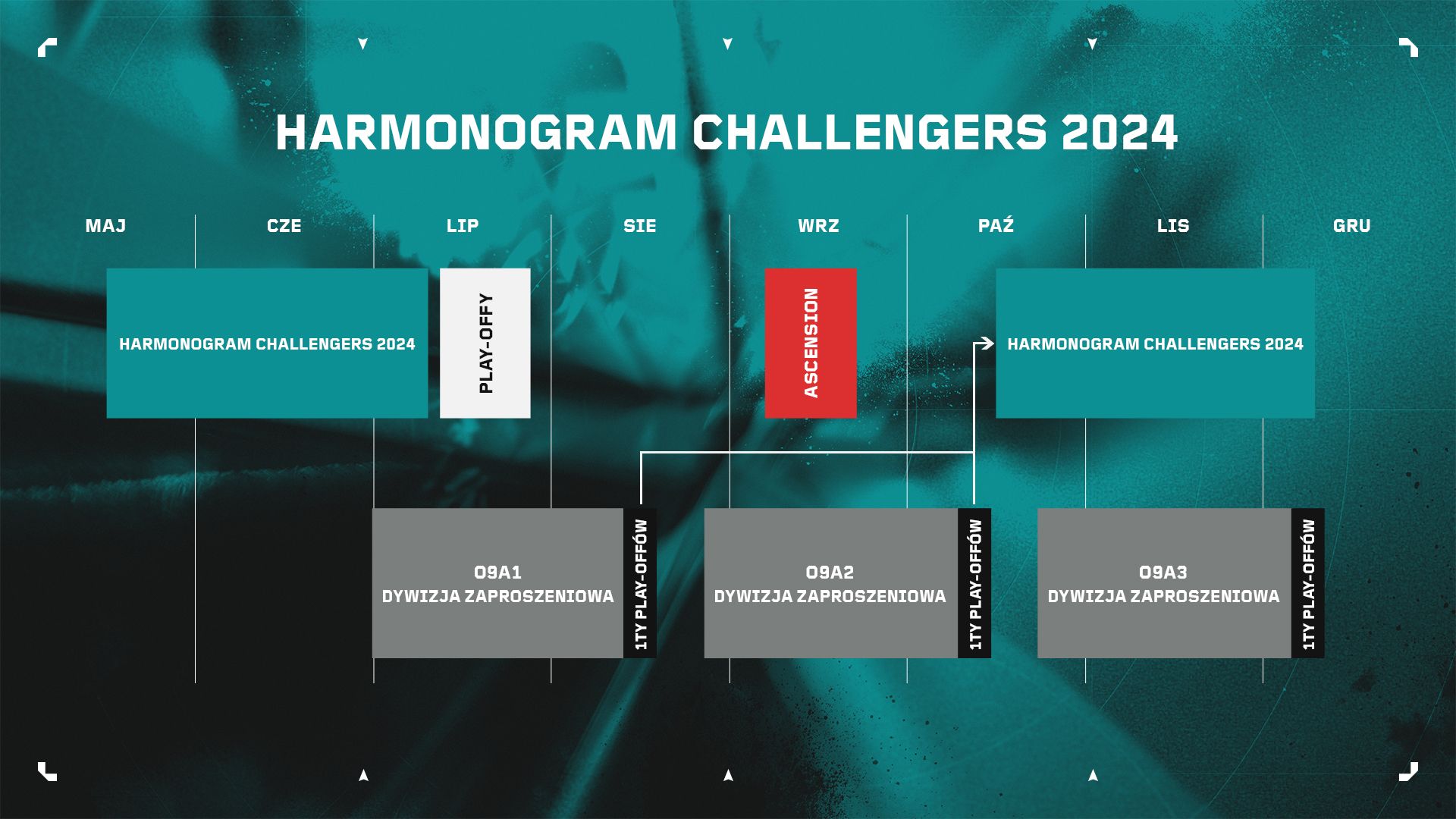 Wprowadzenie Dywizji Zaproszeniowej ujednolica połączenie z Premier do Challengers, zapewniając zespołom stałą możliwość awansu. Począwszy od 1. aktu 9. odcinka zwycięzcy Dywizji Zaproszeniowej zawsze będą mieli szansę rywalizować z drużynami Challengers o miejsce w lidze. Zespoły z Premier będą awansować do Challengers co dwa akty, ponieważ Premier odbywa się częściej niż dłuższe sezony Challengers. Zaktualizowany harmonogram zapewnia, że stawki każdego aktu Dywizji Zaproszeniowej są jasne i lepiej dopasowane do kalendarza Challengers.