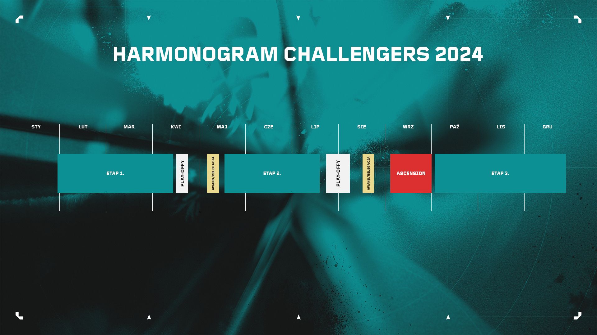 Od początku istnienia esportu VALORANT wasze opinie były nieocenione w określaniu, gdzie i jak ulepszyć VCT, aby lepiej zaspokajać potrzeby społeczności. Aby zniwelować lukę między Ascension a rozpoczęciem kolejnego sezonu Challengers, ogłosiliśmy, że sezon lig Challengers będzie trwał cały rok. Te nowe serie turniejów ligi Challengers zgromadzą najlepsze drużyny Challengers i Premier. Liga Challengers w każdym regionie będzie gospodarzem wyjątkowego turnieju – więcej szczegółów dla poszczególnych regionów podamy w przyszłym tygodniu.
