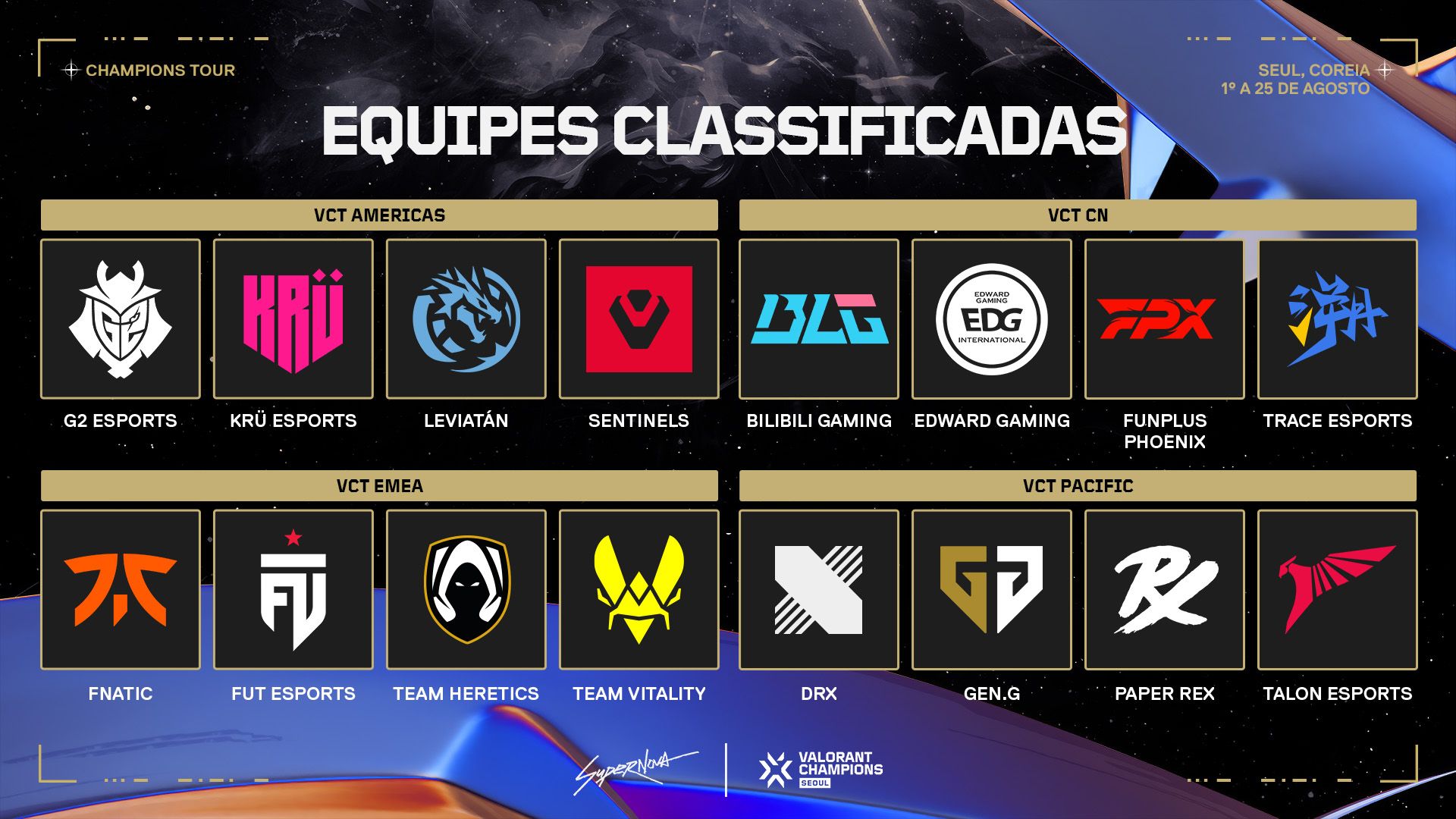 Siga as redes sociais oficiais dos Esports do VALORANT para mais informações sobre o Champions Seoul: