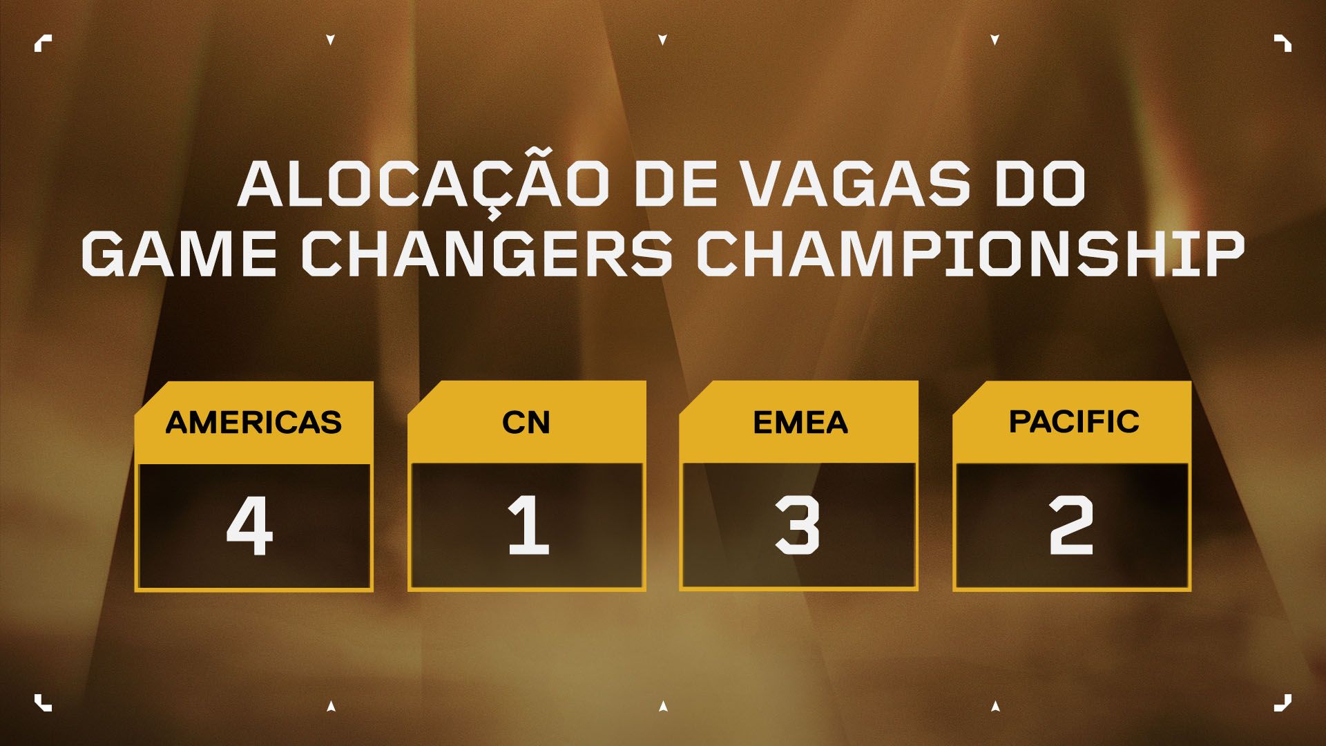 Em 2024, nós expandimos o GCC para 10 times a fim de aumentar as oportunidades disponíveis para os melhores times no mundo. Para 2025, estamos atualizando o Game Changers Championship para agrupar as Américas como uma região e conceder a elas 4 vagas no total.