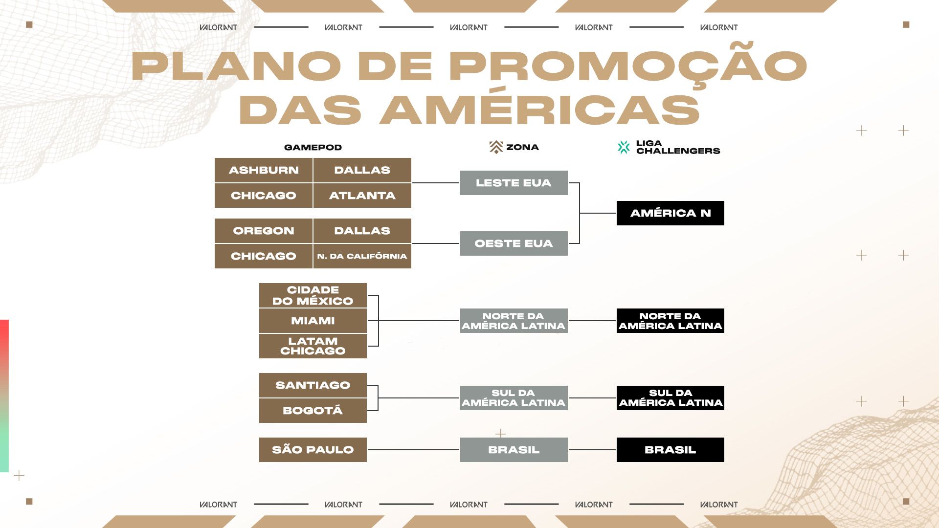 Existe uma progressão global clara do Premier pelo Challengers rumo às ligas internacionais e, possivelmente, ao palco do Champions. Para iniciar sua jornada, confira seu servidor do Premier e o percurso para a Liga Challengers. Verifique os requisitos regionais de residência da Liga Challengers para garantir que você e sua equipe poderão participar.