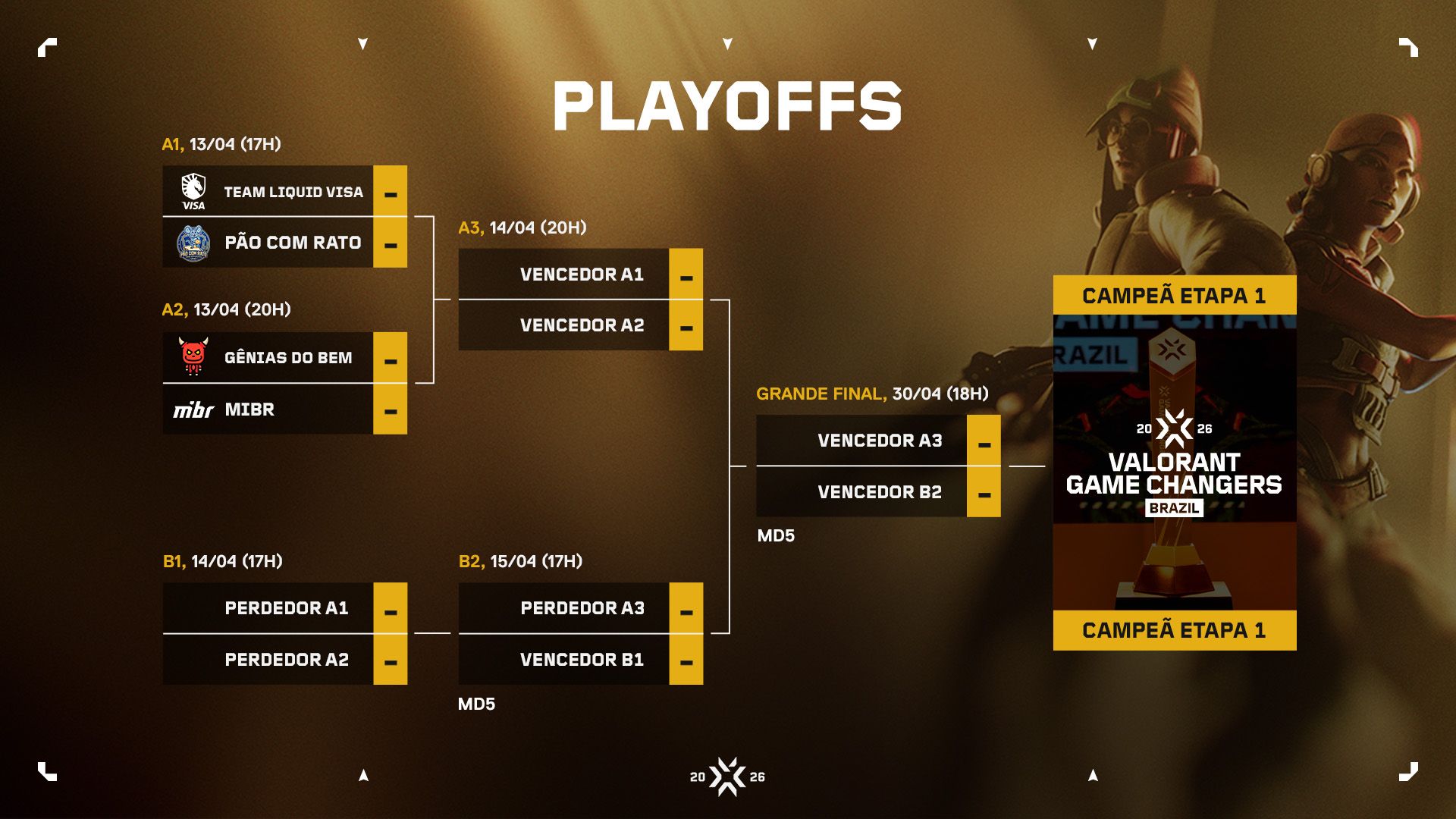 Os Playoffs da Etapa 1 do Game Changers Brazil 2026 vão começar. Após uma disputada Fase Suíça com oito equipes, quatro times avançaram para a próxima etapa da principal competição inclusiva do país.
