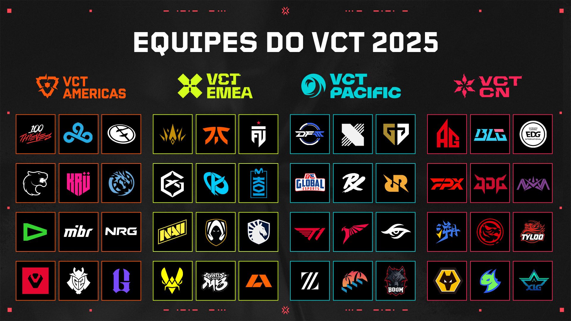 A Temporada 2025 dos Esports do VALORANT vai começar em janeiro e vem trazendo mudanças, novas equipes e novos formatos! Chegou agora? Vem com a gente. Aqui vai tudo que você precisa saber para se preparar para o começo do VCT. Novas equipes foram promovida nas regiões EMEA, Pacific, CN e Americas, então esta temporada vem com o maior ano da nossa competição até o momento.