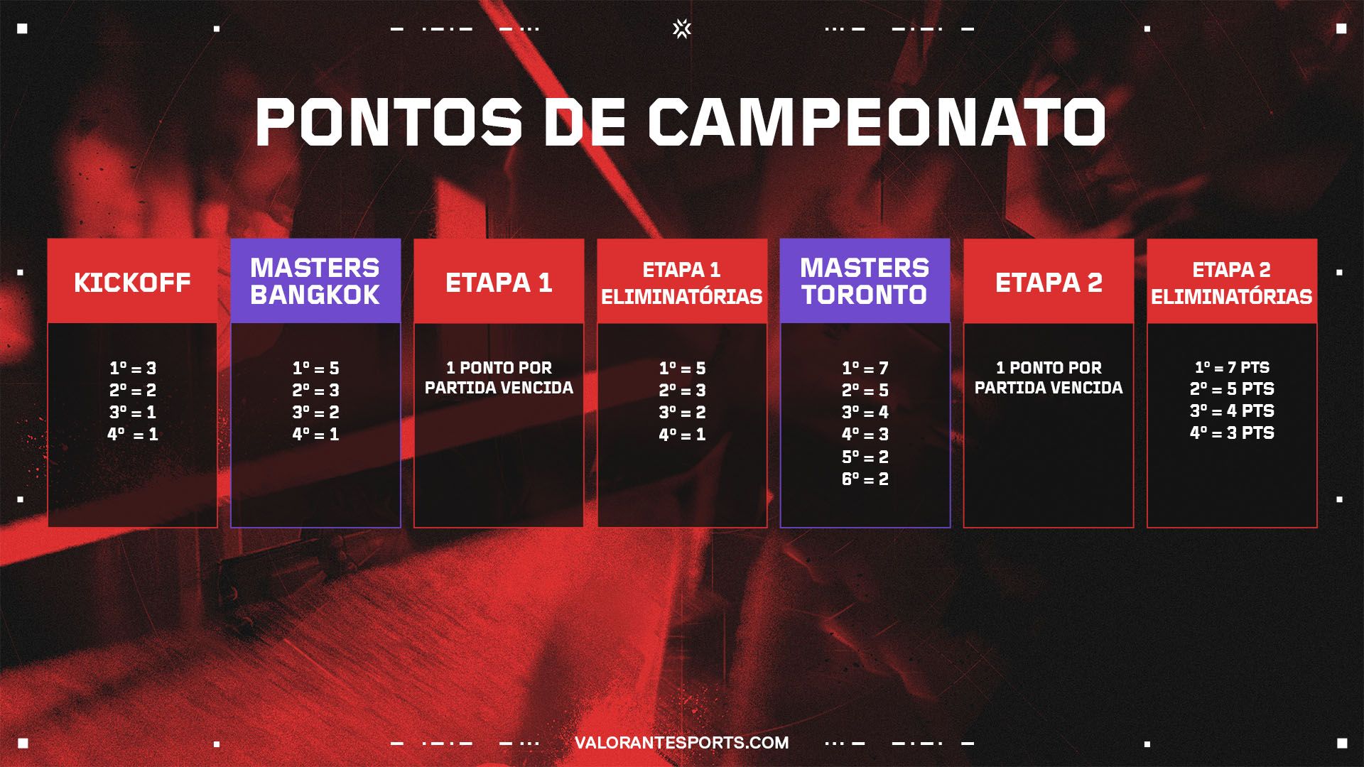 Os Pontos de Campeonato, mais ou menos como no ano passado, serão distribuídos ao longo de todas as etapas e competições. Nosso objetivo é garantir que todos os trechos da temporada sejam importantes e relevantes. E, para atingir essa meta, vamos fazer duas alterações importantes: distribuição de pontos mais complexa nos Masters e nas Eliminatórias, e Etapas autocontidas que dão uma chance de recomeçar no meio da temporada.