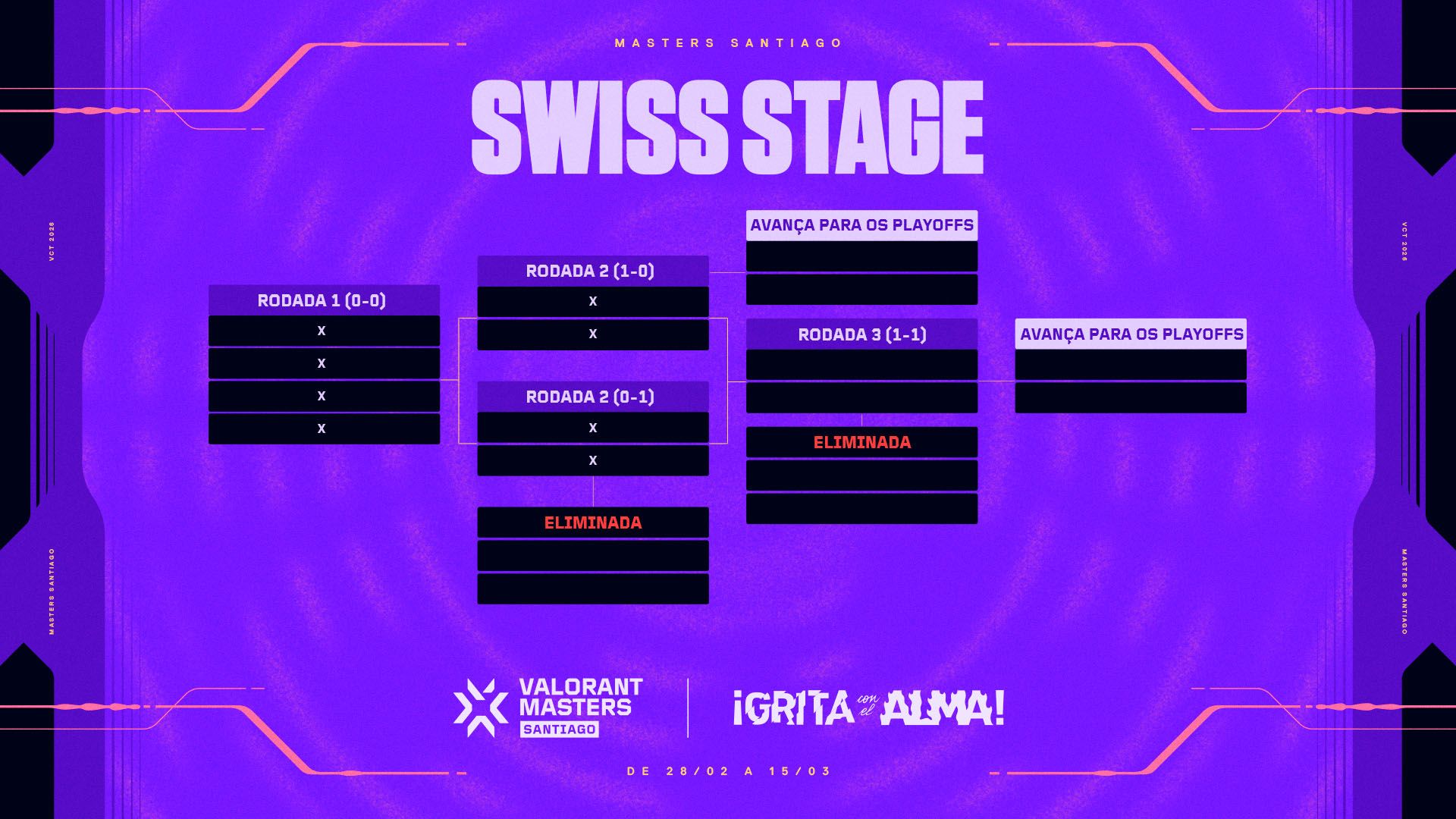O Masters Santiago é dividido em duas fases: o Swiss Stage e os Playoffs.