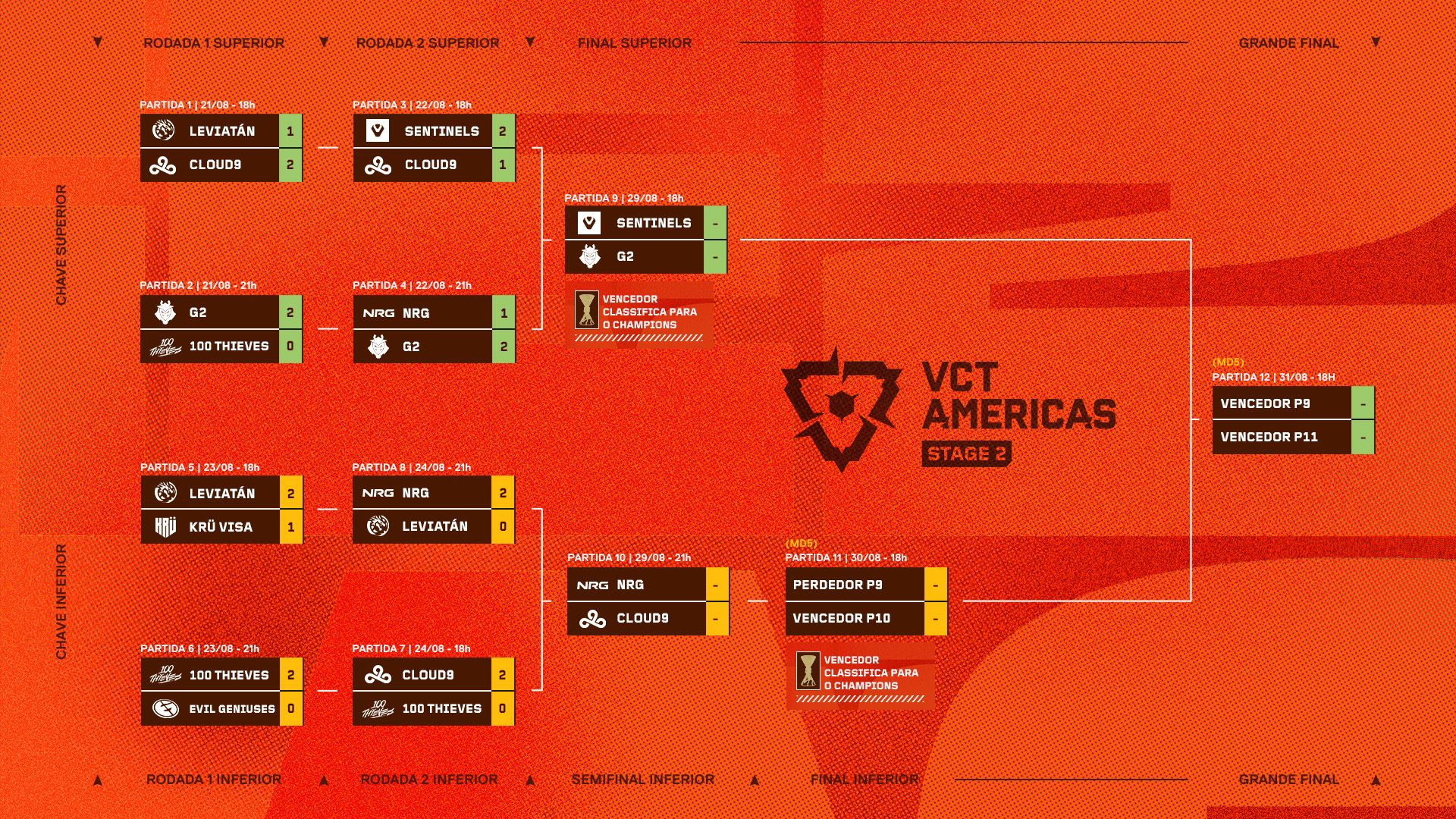 O fim de semana das finais do VCT Americas Etapa 2 chegou. Quatro equipes estão na corrida para levantar o cobiçado troféu do VCT Americas e levar o título de campeão: Sentinels, G2, NRG e Cloud9.