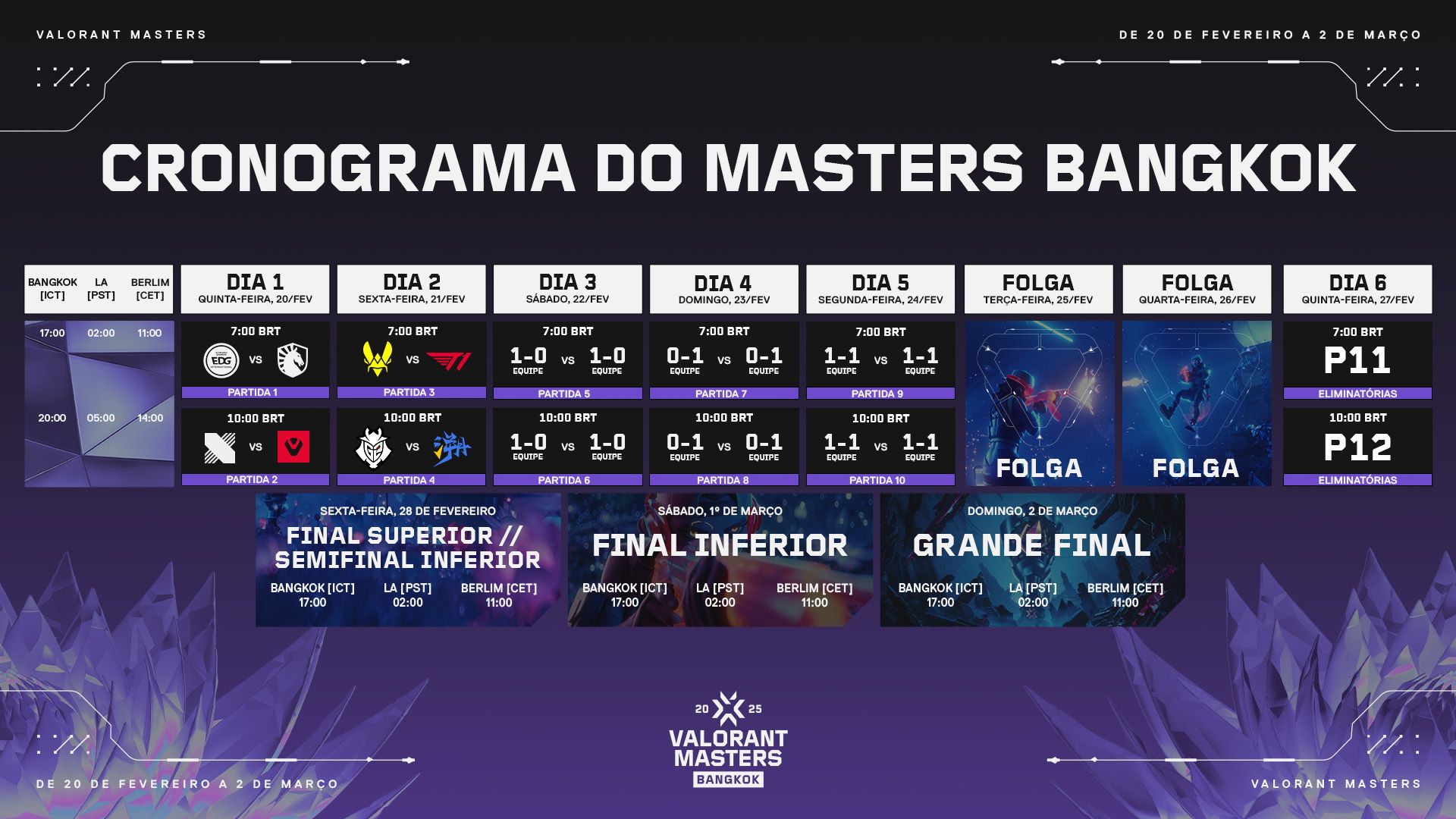 Siga as redes sociais oficiais dos Esports do VALORANT para mais informações sobre o Masters Bangkok: