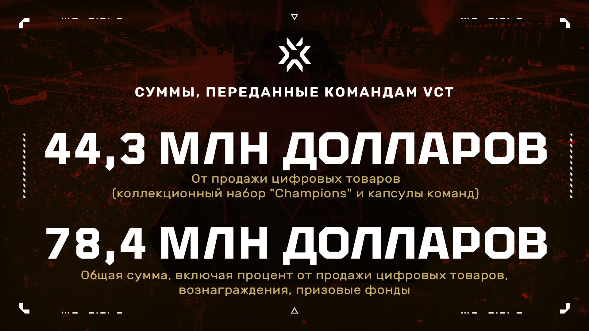 Благодаря игрокам VCT передала командам 78,4 млн долларов, из которых 44,3 млн было выручено от продажи цифровых товаров