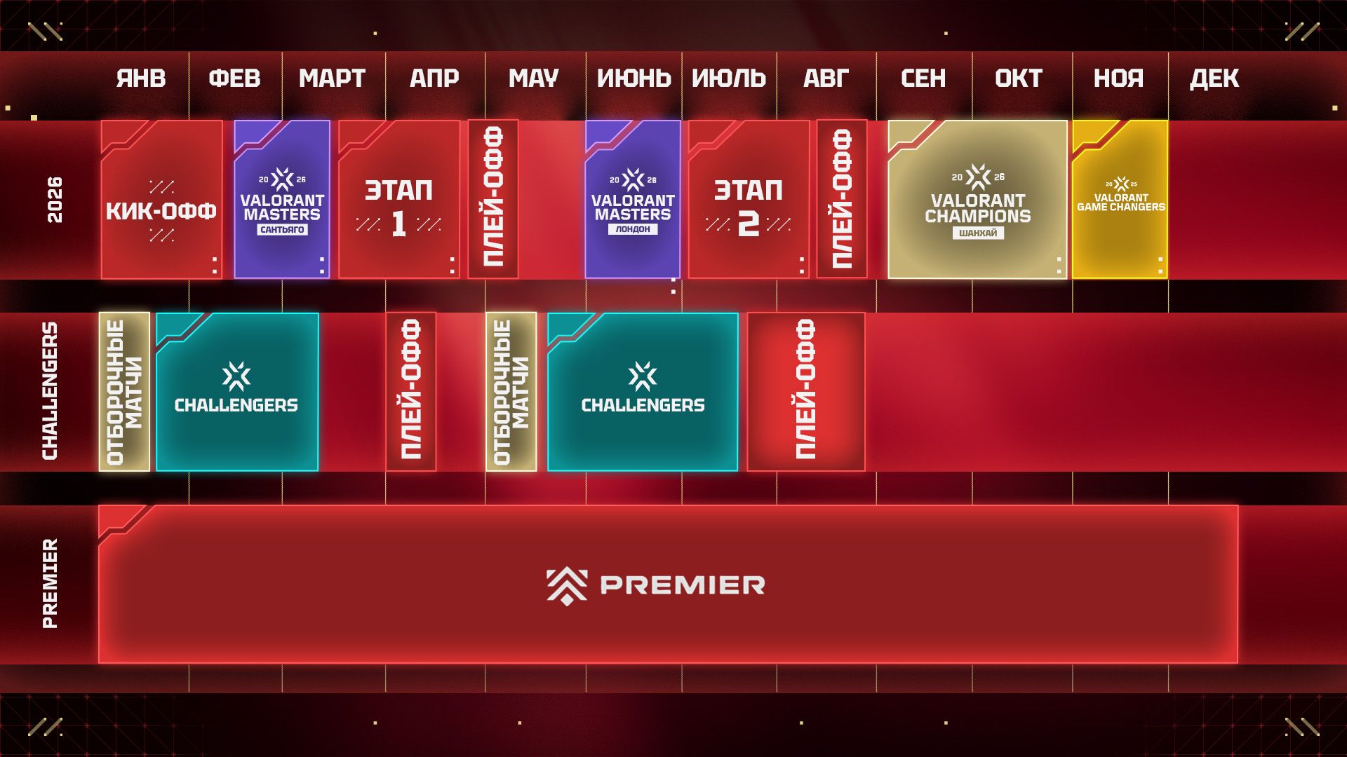 Сезон-2026 будет незабываемым: больше международных турниров, напряженные форматы, расширенный состав участников Masters и новый Путь к Champions. Эти изменения ознаменуют переход к новой эпохе киберспорта VALORANT — и более открытым соревнованиям VCT!