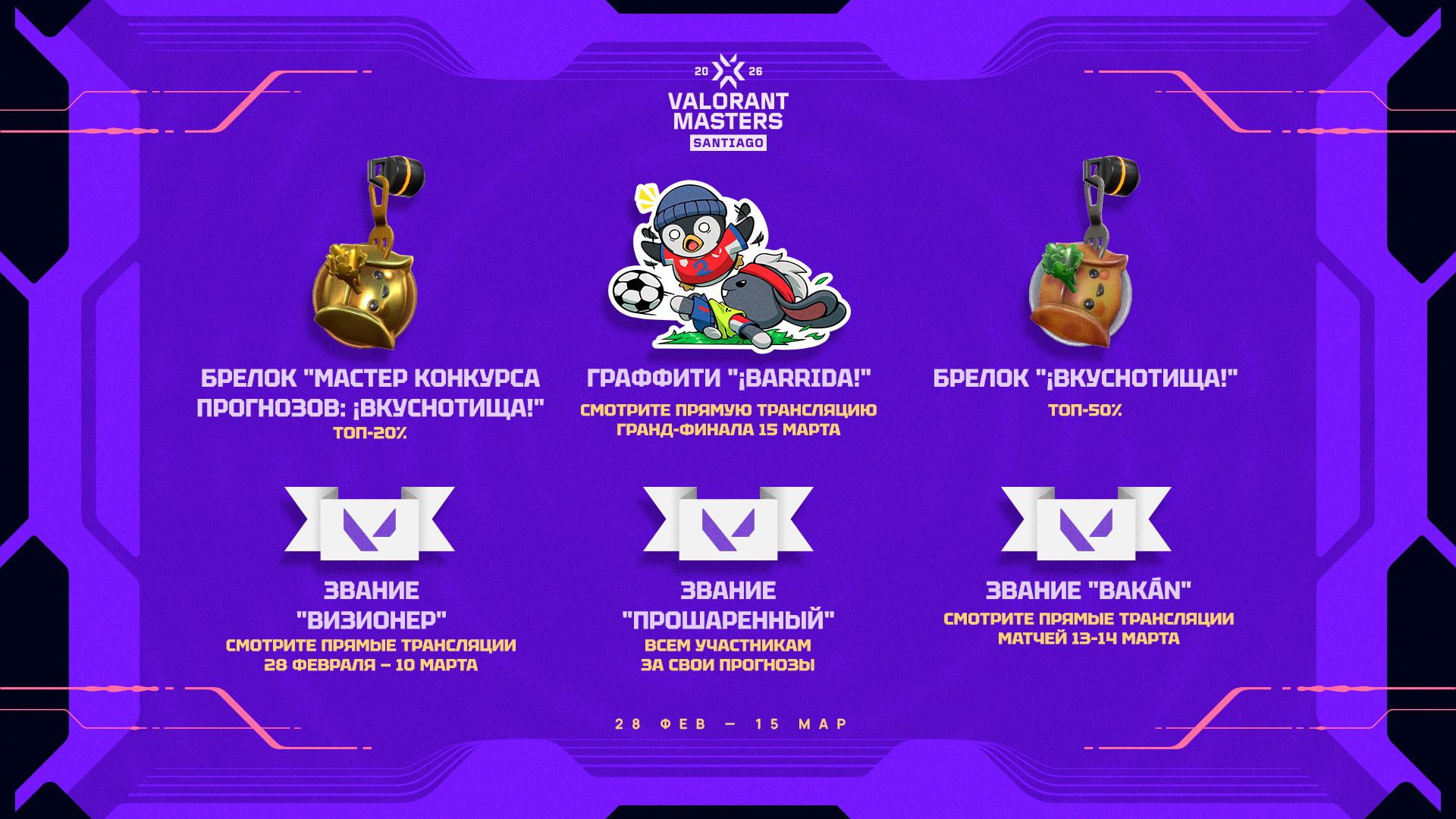 Смотрите трансляции Masters Santiago и зарабатывайте эксклюзивные Drops! На этот раз за просмотр вы сможете получить особые звание и граффити. Отправьте свои прогнозы и узнайте, насколько хороша ваша интуиция.