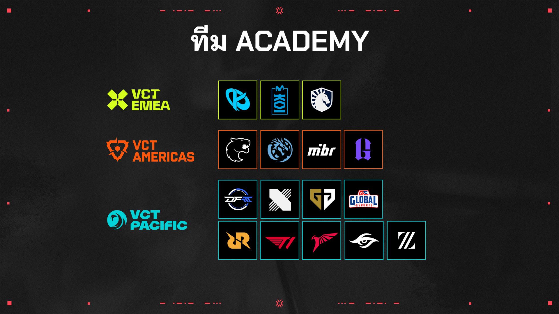 เราเพิ่งประกาศว่าในปี 2025 ทีมพาร์ทเนอร์จะสามารถส่งทีม Academy เข้าแข่งขันใน Challengers เพื่อช่วยฝึกฝนผู้เล่นหน้าใหม่ให้กลายเป็นดาวรุ่งประจำทีมของตัวเอง พร้อมเปิดโอกาสให้ผู้เล่นได้ฉายแววมากขึ้น ถึงแม้ว่าทีม Academy จะไม่มีสิทธิ์เข้าร่วม Ascension แต่เราก็ตื่นเต้นที่สามารถสนับสนุนระบบการแข่งขันของ Challengers ได้มากขึ้น คอยติดตามดูดาวรุ่งดวงใหม่จากทีม Academy ทั่วโลกด้านล่างนี้ได้เลย!