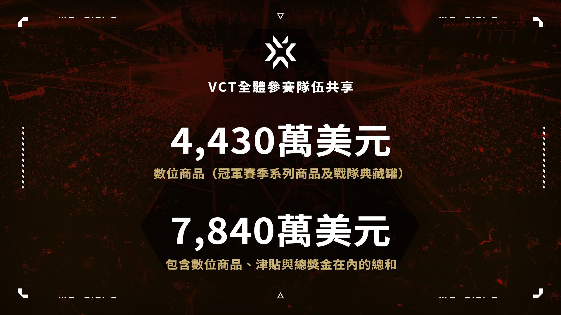 今年《特戰英豪》的成長也促成了電競數位商品的重大成功。多虧有各位和數百萬玩家熱情購買遊戲內的VCT內容,我們才得以將數位商品的4430萬美元收入分配給各戰隊。再加上津貼與總獎金,VCT總共分配了7840萬美元給其44支戰隊,這是個瞠目結舌的數字,展現出我們社群的熱情與投入程度。