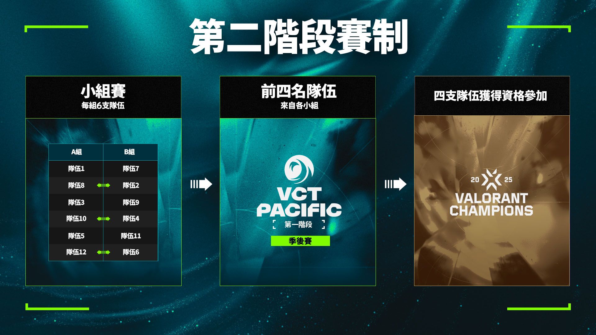 在各自的小組內,隊伍將再次進行單循環賽,各小組的前四名將晉級季後賽,爭奪兩個2025冠軍賽的名額,以及太平洋賽區的冠軍頭銜!