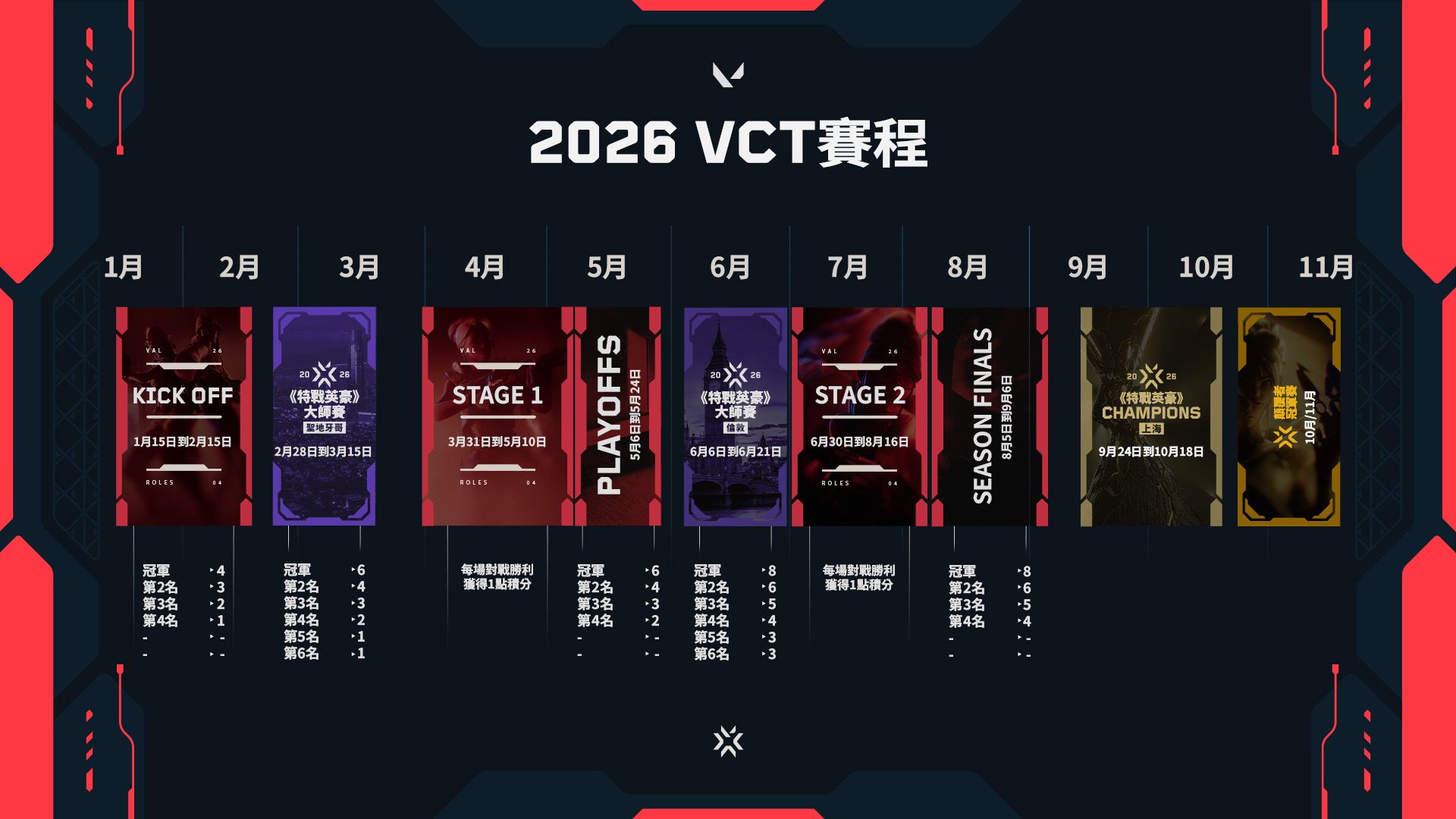 2026 VCT賽季即將到來,今年帶來一系列全新變化:更多現場賽事、新隊伍加入聯賽,還有更開放的「Champions晉級之路」!我們也將看到新秀選手在賽場上書寫自己的故事。以下是本次變動的重點整理。
